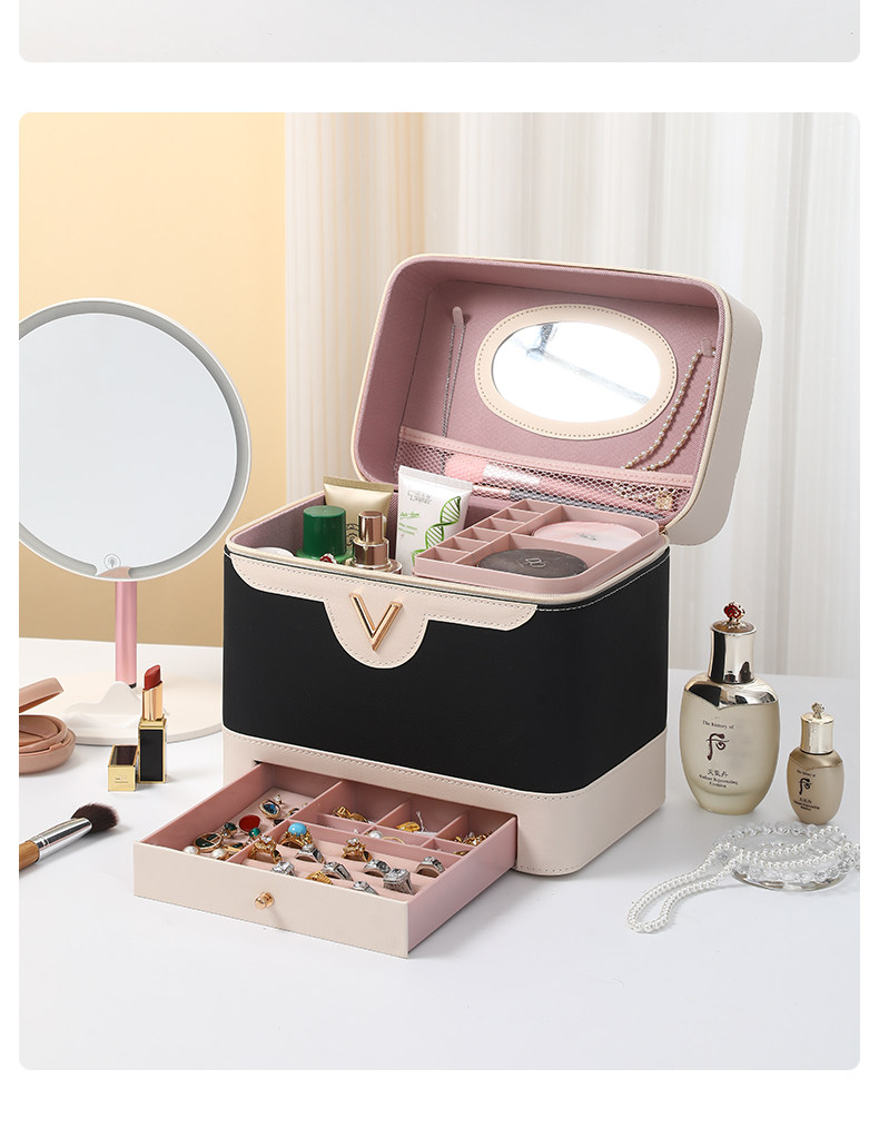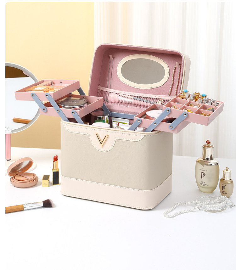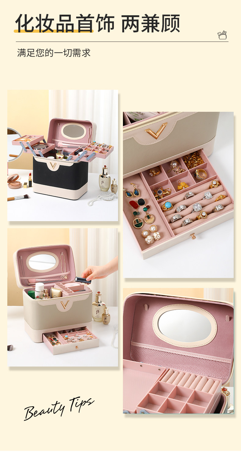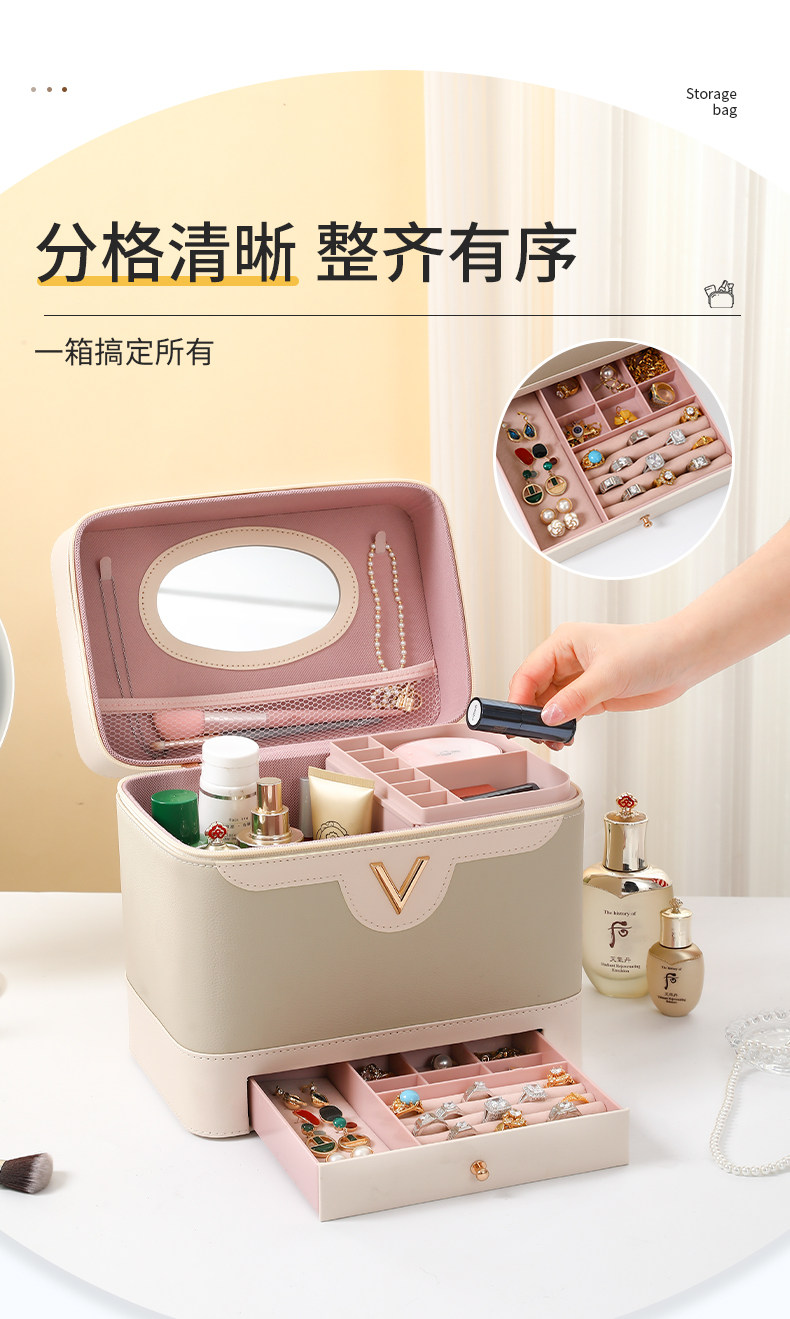 新款撞色轻奢化妆包大容量多功能大号便携化妆品护肤品收纳盒网红