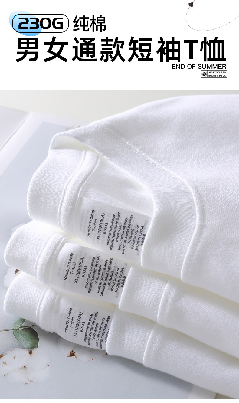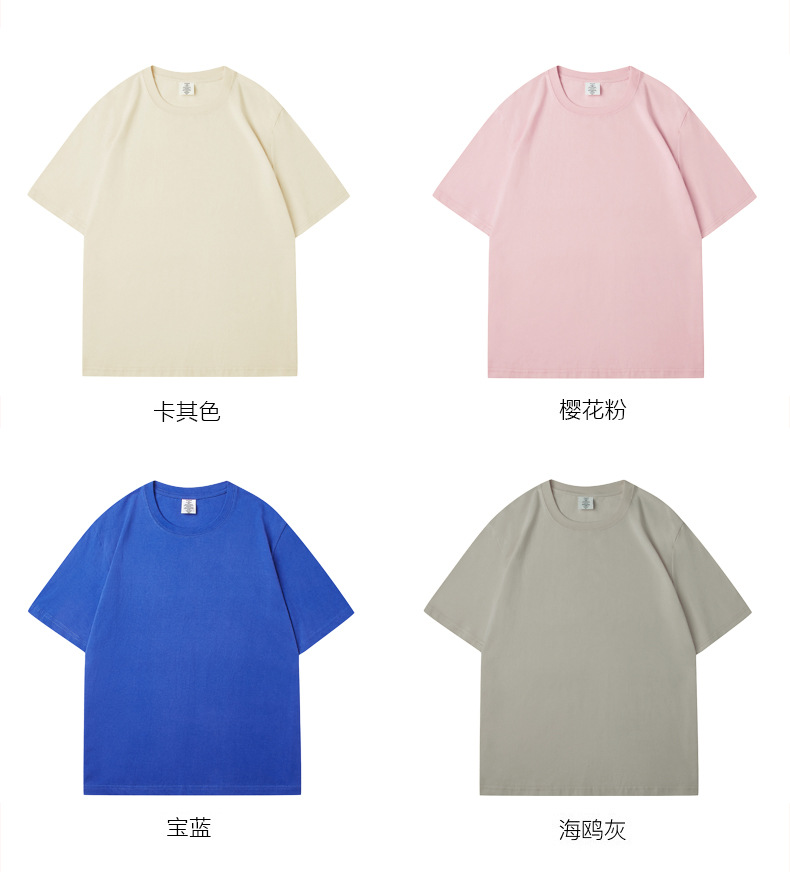 重磅短袖t恤夏季圆领230克纯棉体恤小领口纯色青少年男女短袖T恤