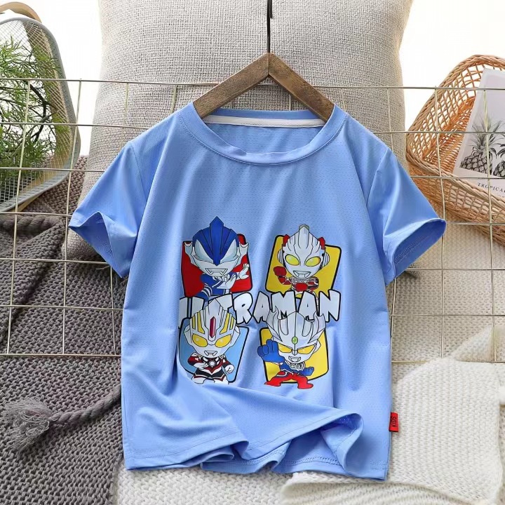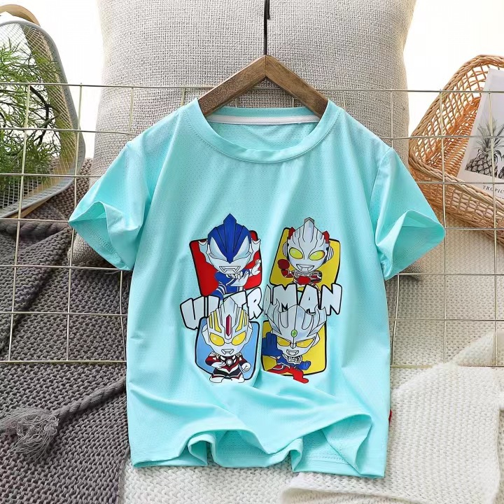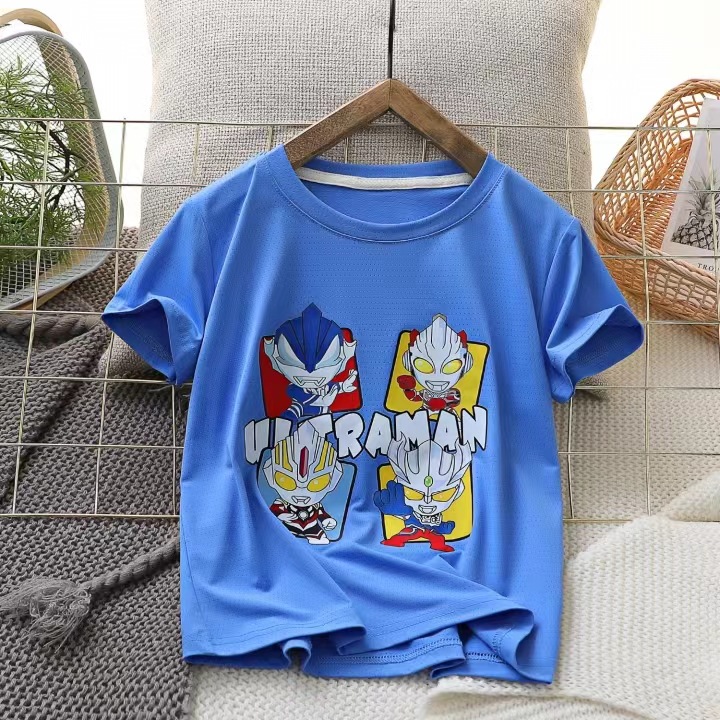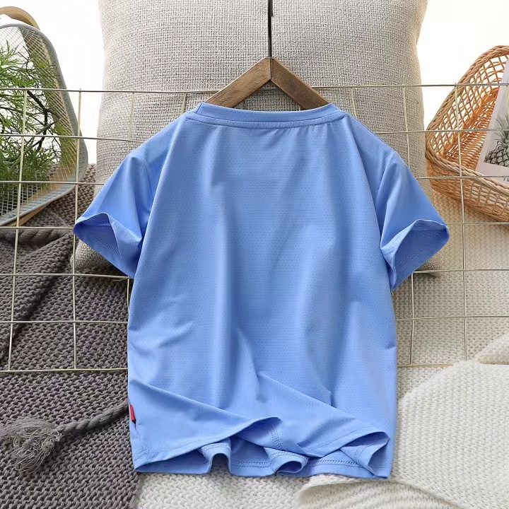 男童夏装薄款速干短袖T恤2024新款儿童冰感透气网眼体恤弹力上衣