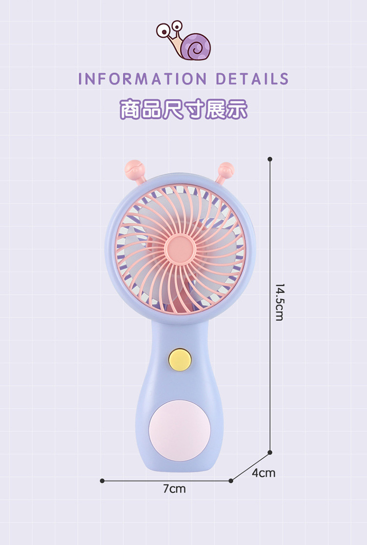 夏季网红爆款高颜值可爱小蜗牛手持usb充电风扇 迷你小巧口袋风扇