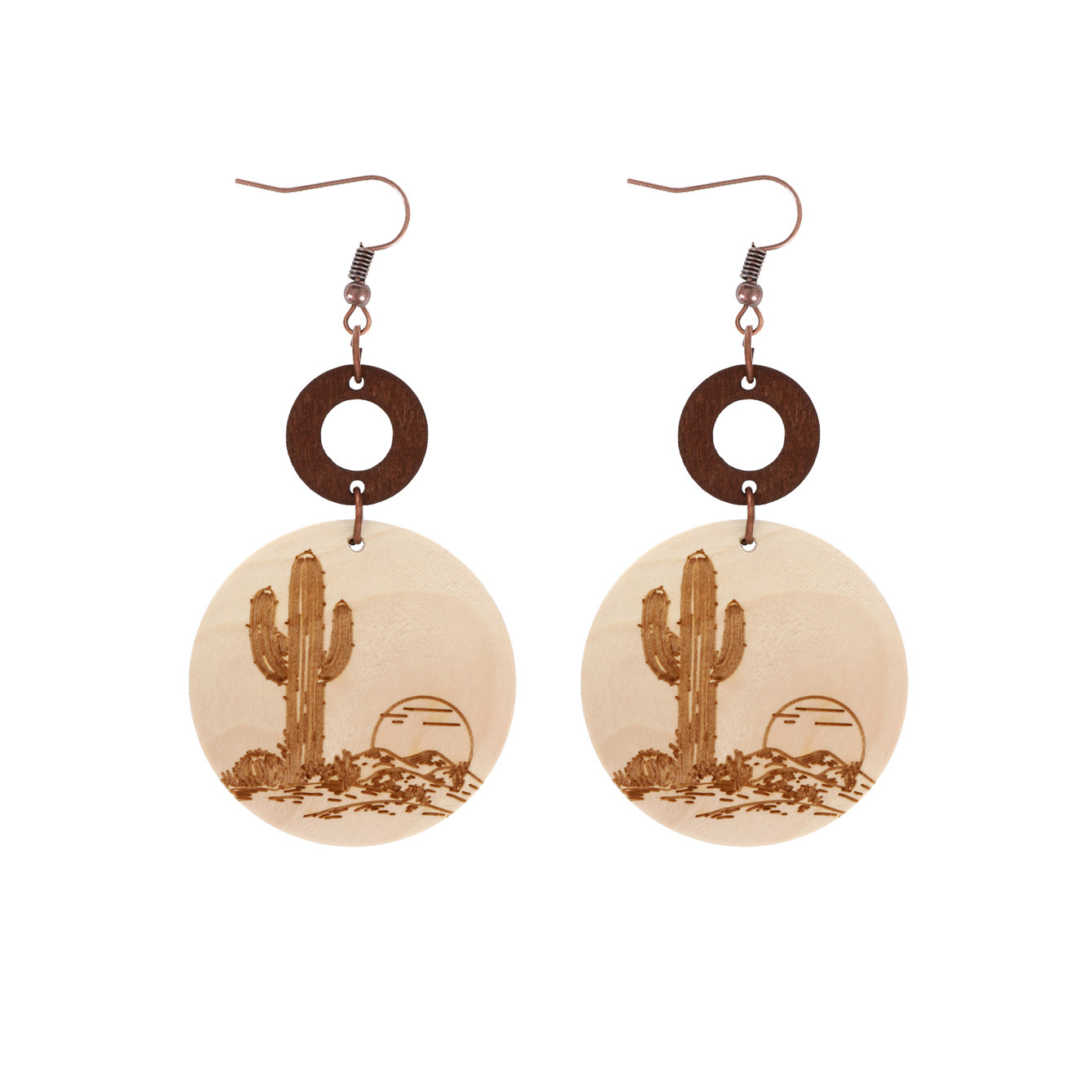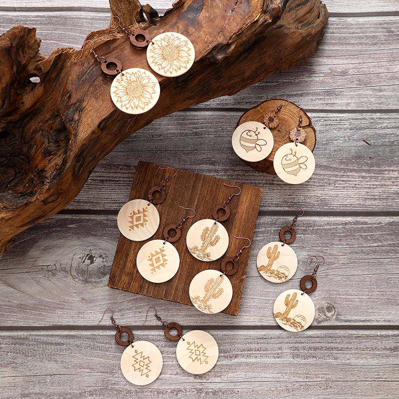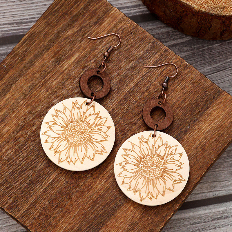 跨境向日葵小蜜蜂仙人掌木质耳环简约欧美耳环亚马逊速卖通