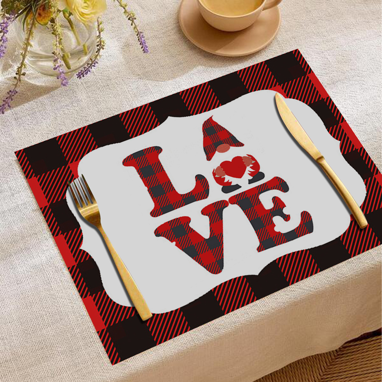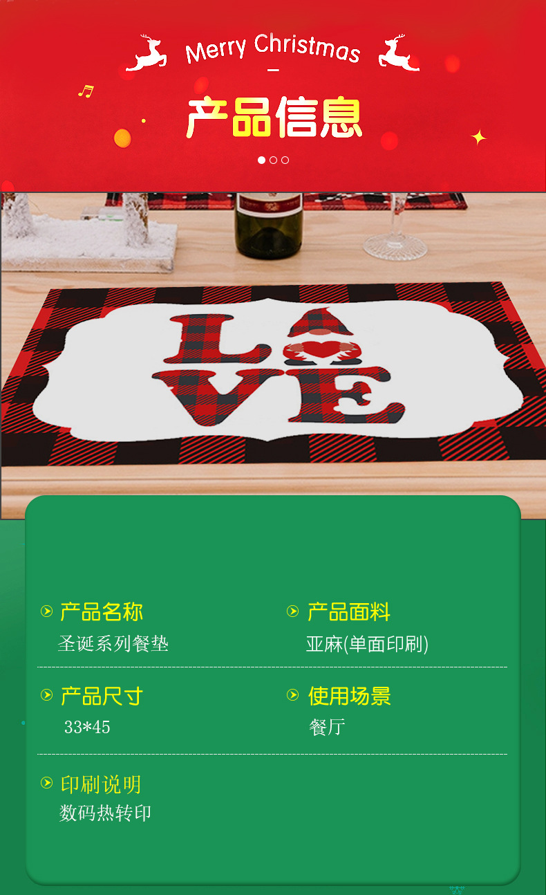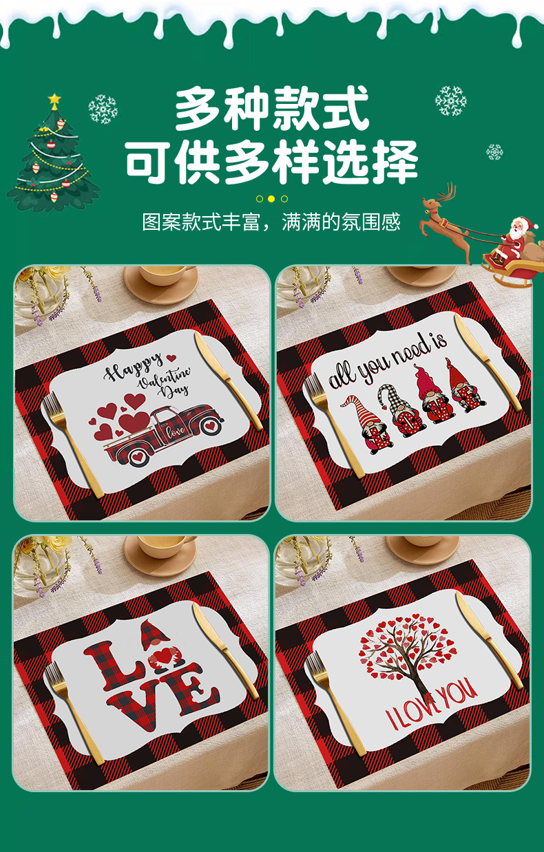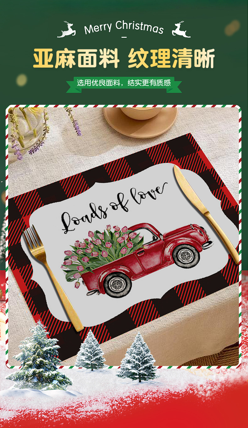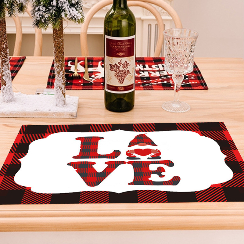 跨境新品圣诞系列新年布艺格子桌旗餐垫客厅西餐桌用具隔热垫子