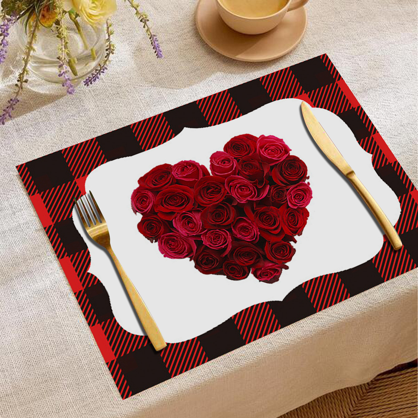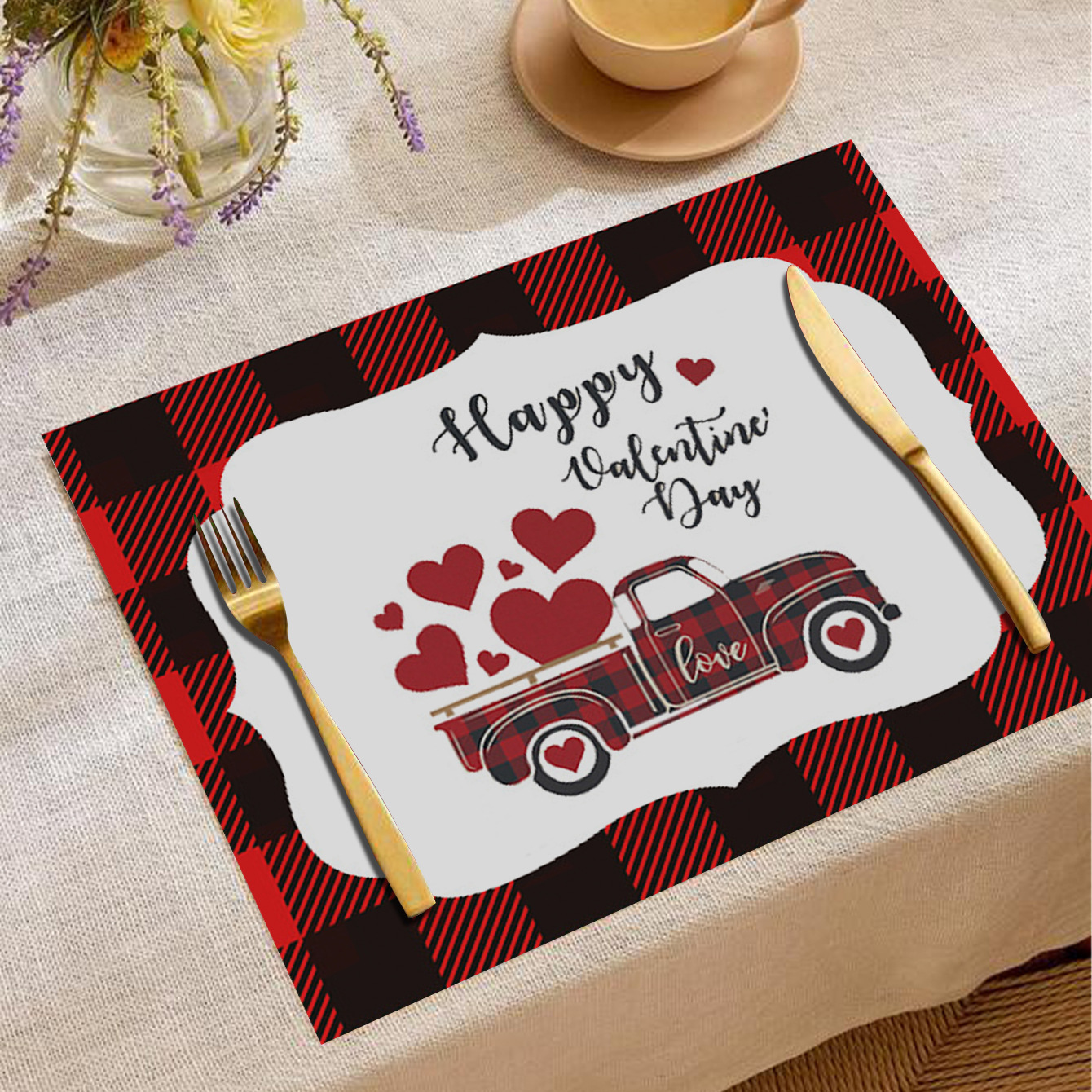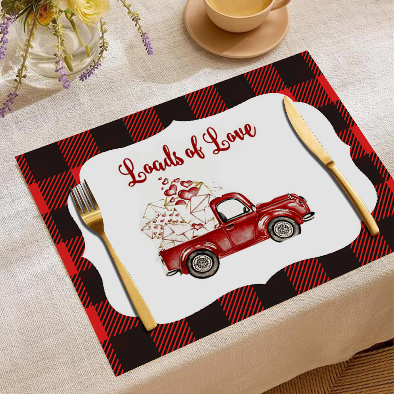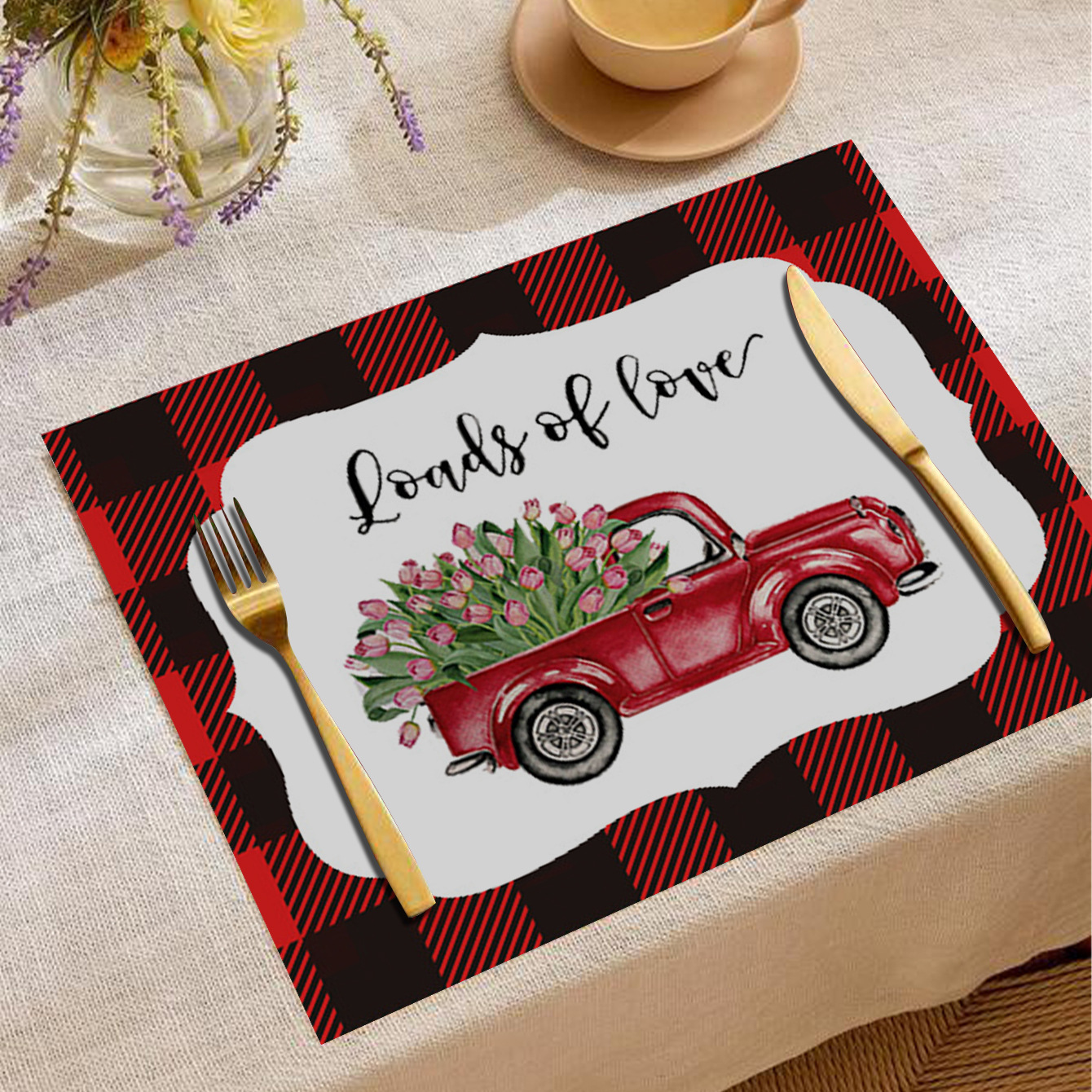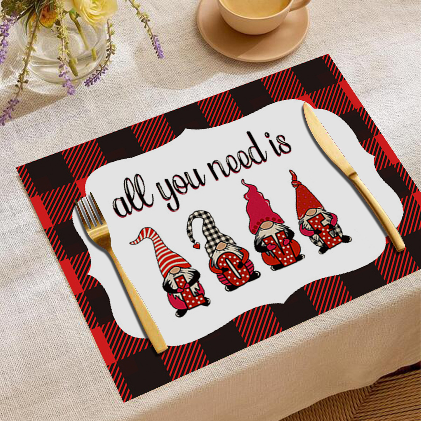 跨境新品圣诞系列新年布艺格子桌旗餐垫客厅西餐桌用具隔热垫子