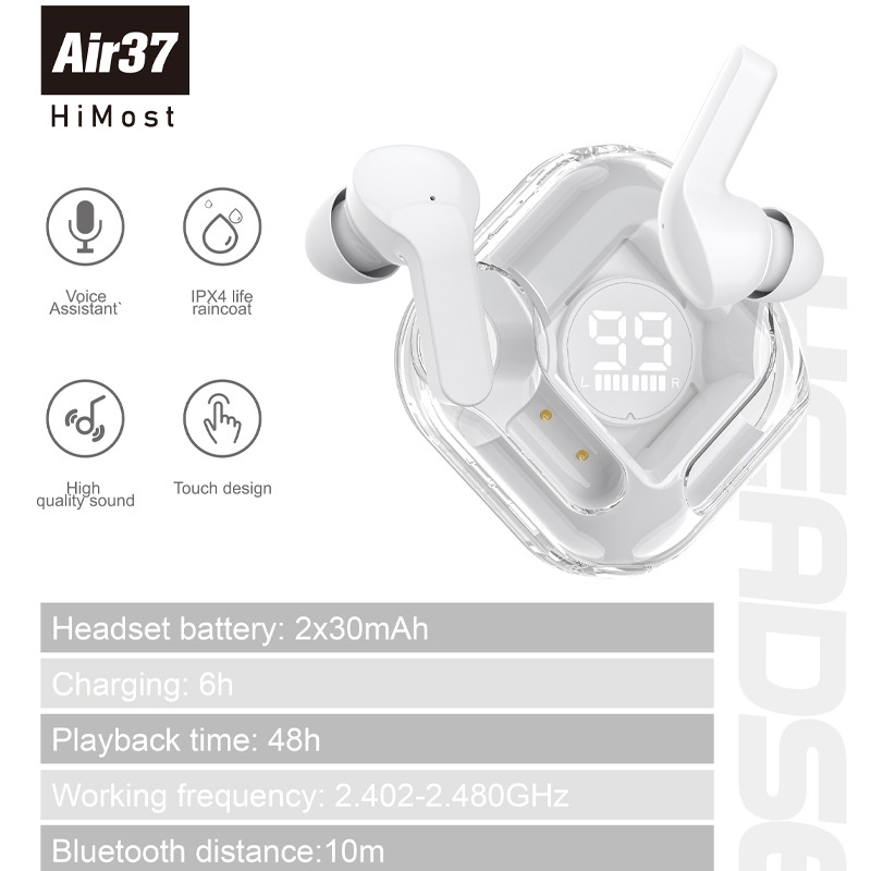 air37跨境爆款蓝牙无线耳机 TWS蓝牙耳机 降噪耳机 透明a运动耳机