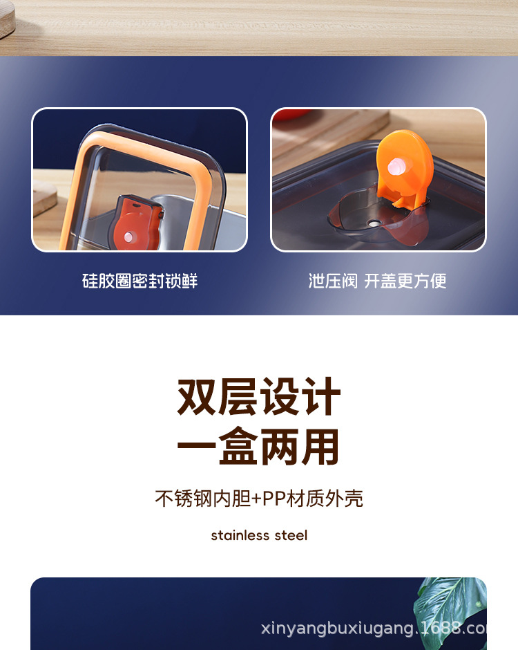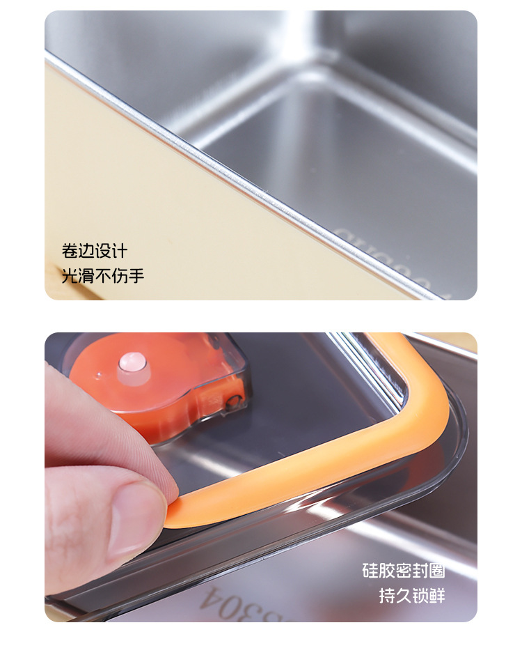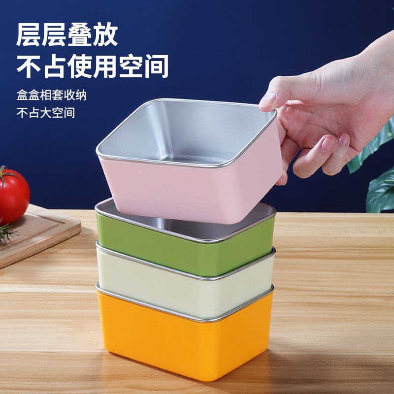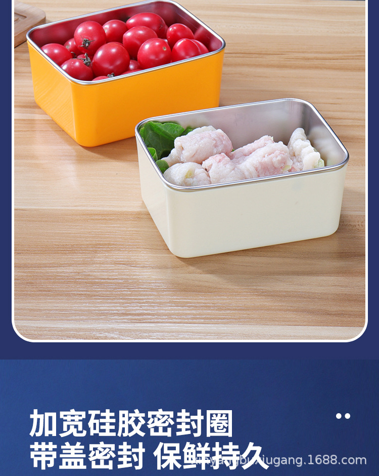 密封保鲜盒硅胶盖不锈钢保鲜盒带盖密封饭盒冰箱冷冻收纳盒批发