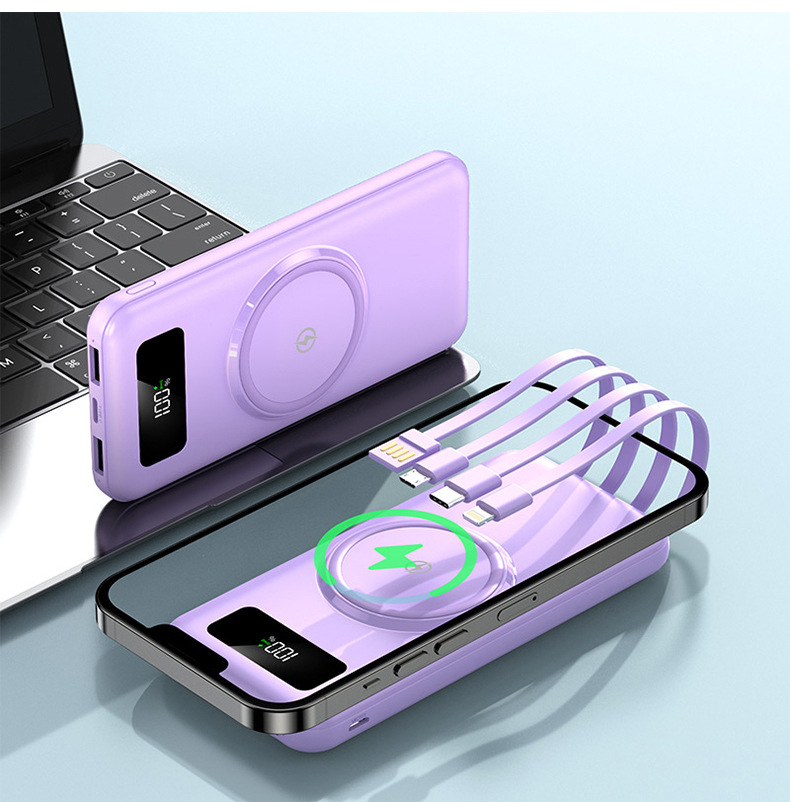 跨境无线充自带线充电宝大容量20000毫安移动电源快充定 制LOGO