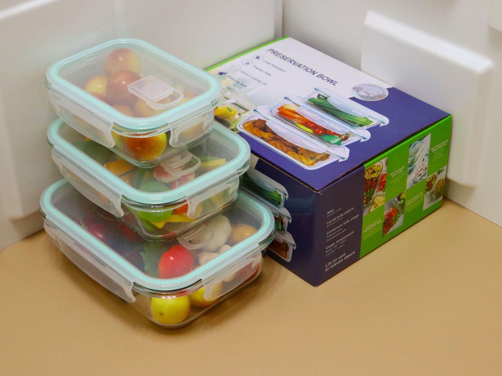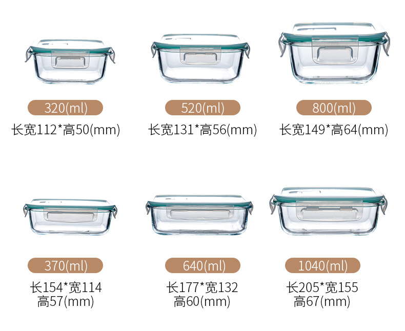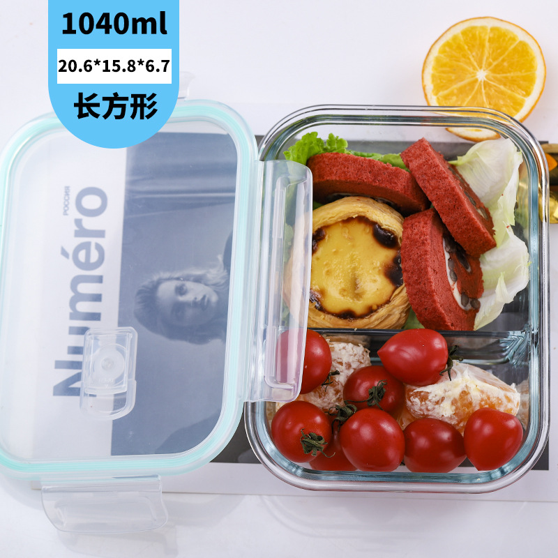 长方形学生玻璃饭盒礼盒套装微波炉上班族三分格保鲜盒餐盒便当盒