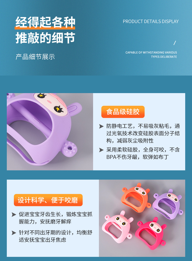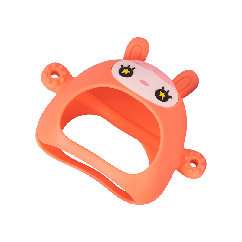 加工婴儿食品级硅胶牙胶手抓兔子磨牙棒硅胶防吃护手宝宝咬胶玩具