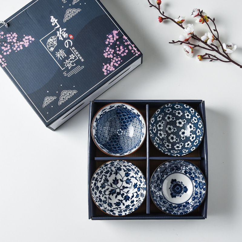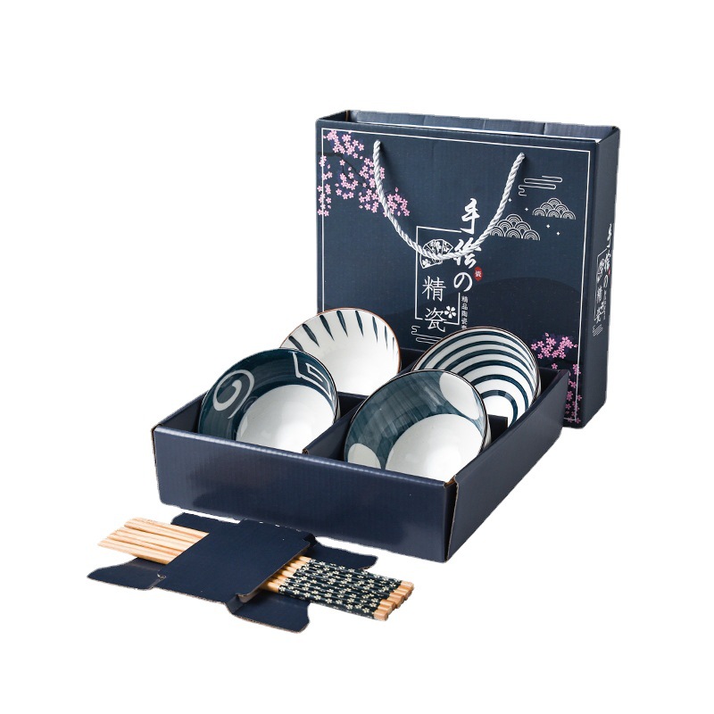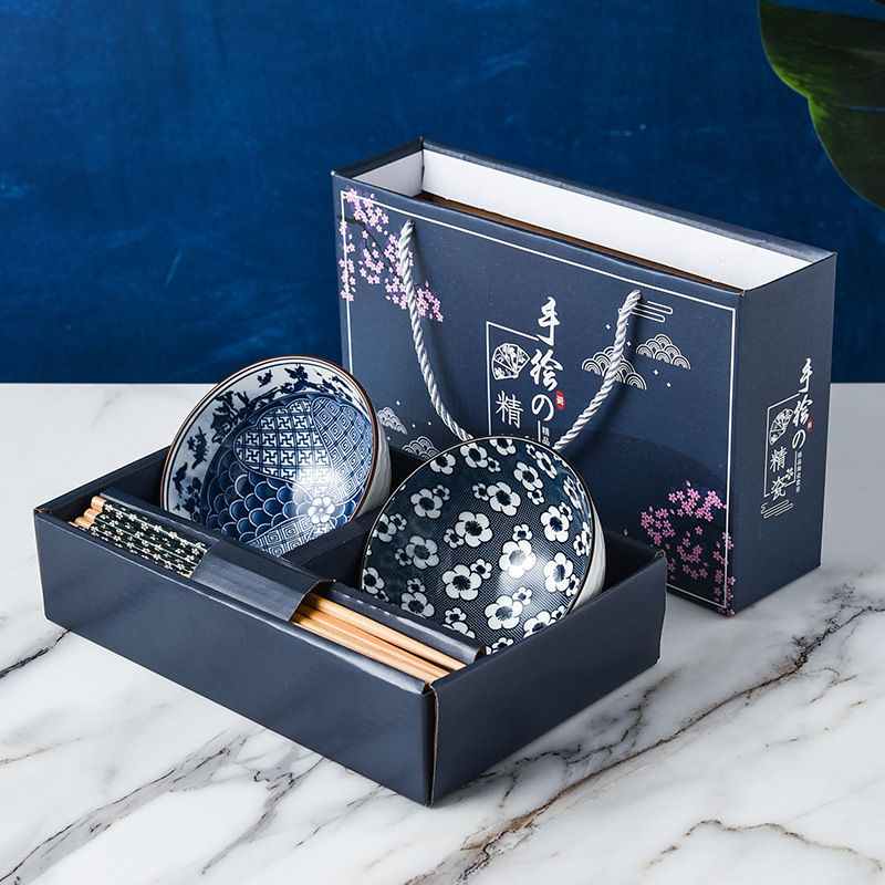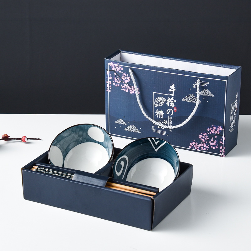 日式碗筷套装创意礼品手绘青花瓷碗陶瓷餐具套装礼盒可logo定制
