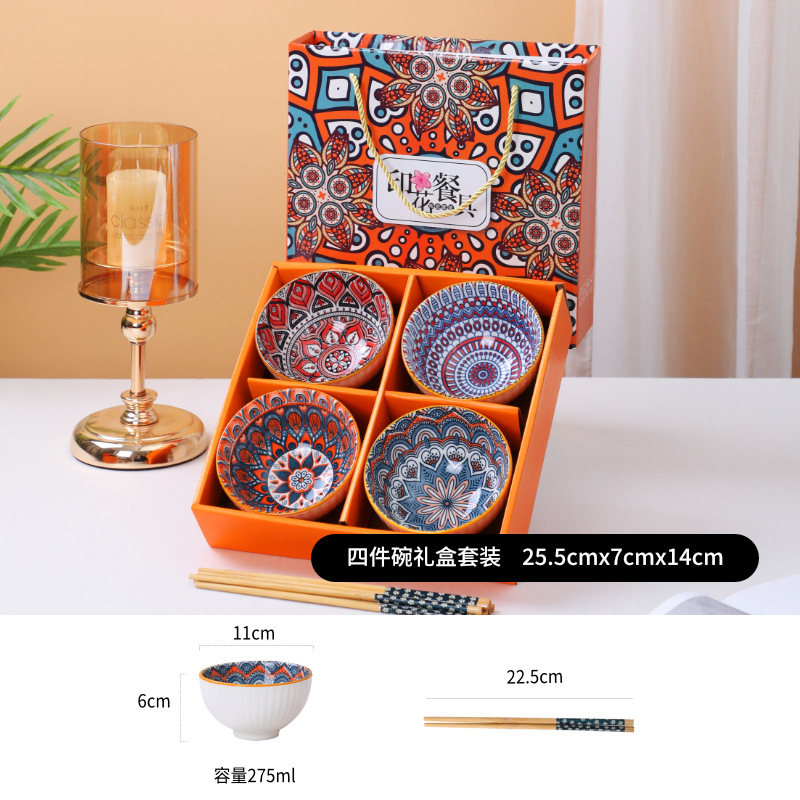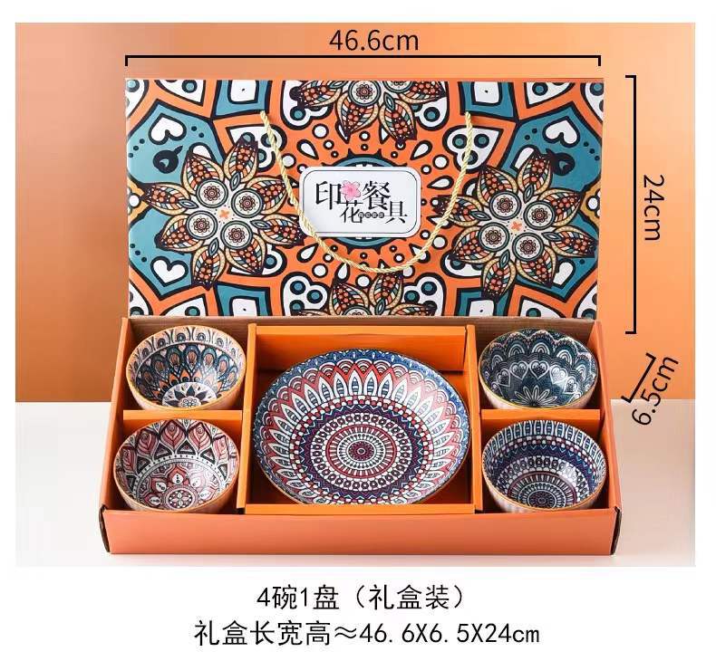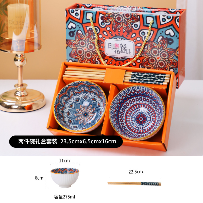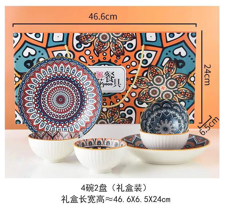 波西米亚陶瓷餐具套装碗筷套装青花碗盘保险公司礼品房地产随手礼
