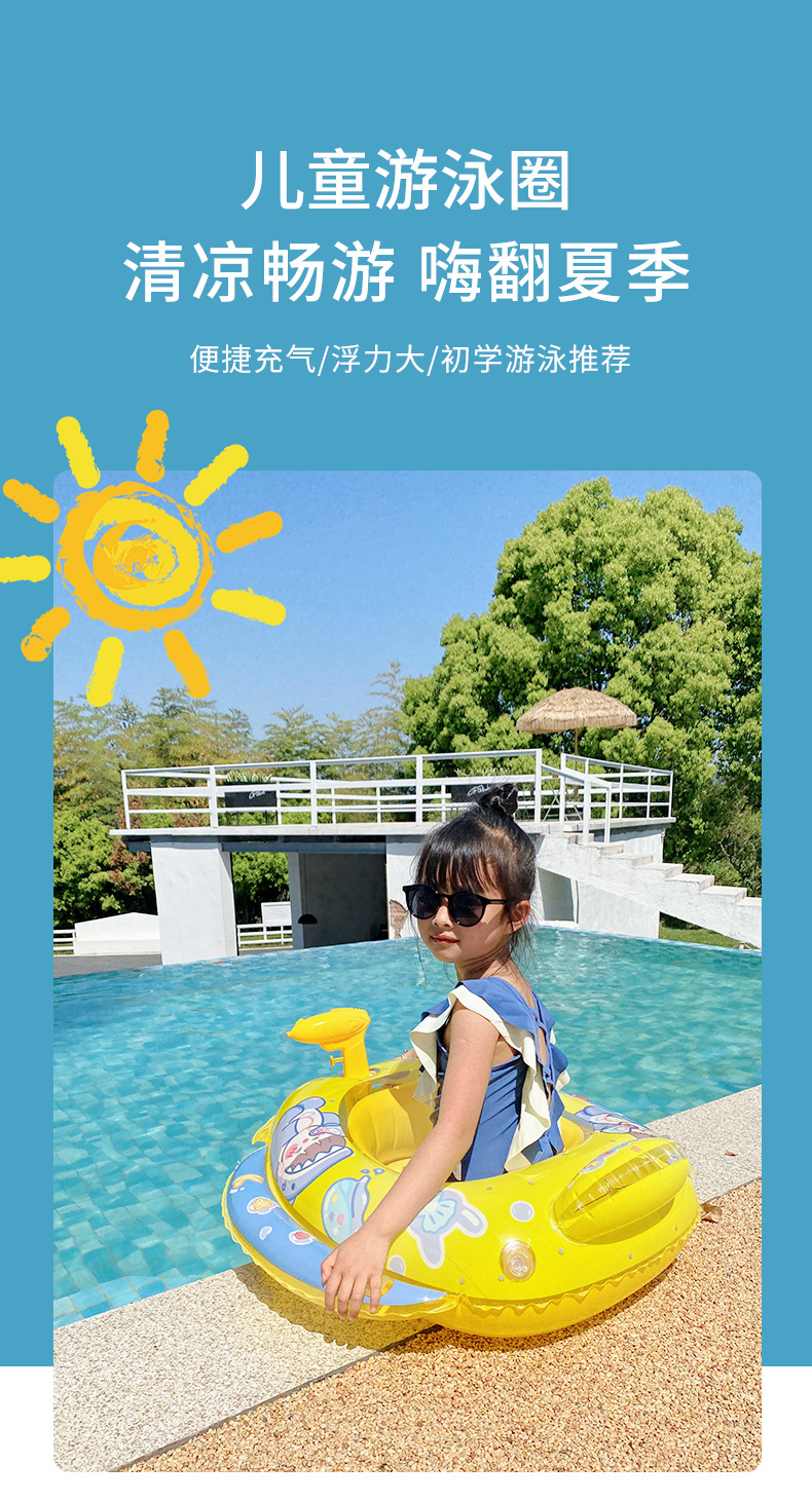 ins加厚游泳圈卡通系列腋下泳圈儿童玩带水枪浮圈男女充气游泳圈
