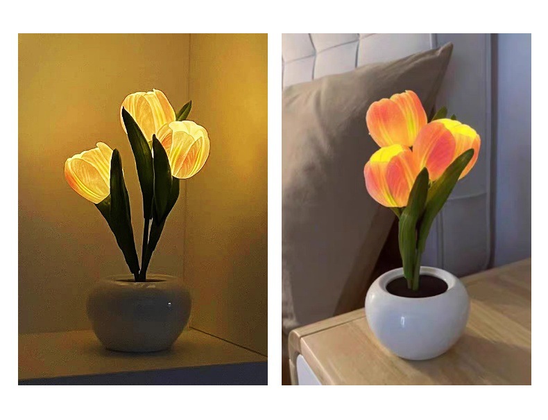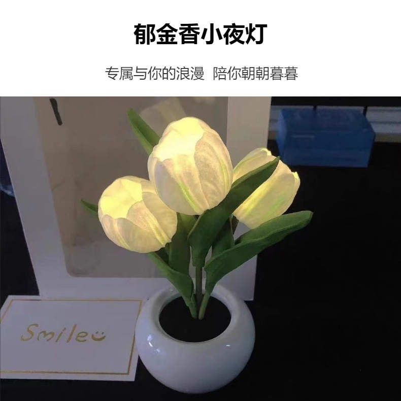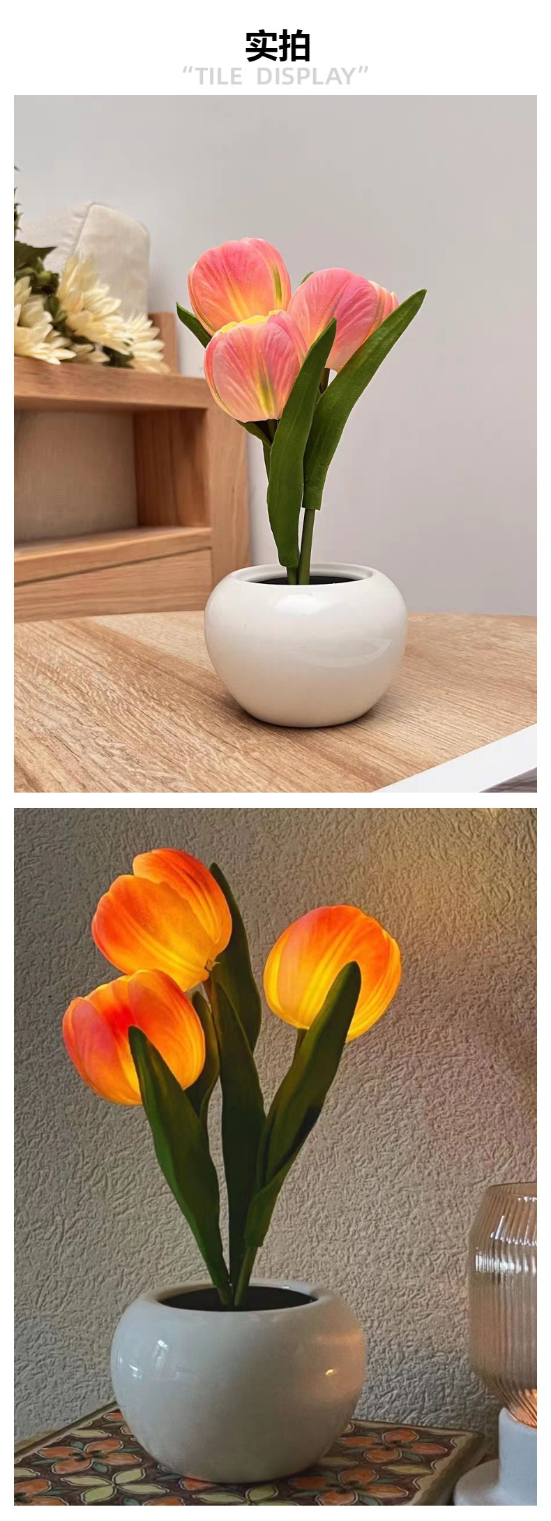 新款led郁金香小夜灯仿真花束卧室床头装饰氛围灯父亲节创意礼品