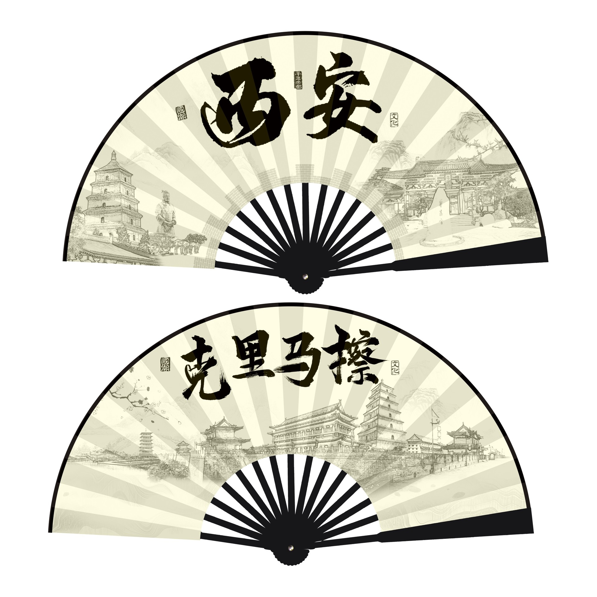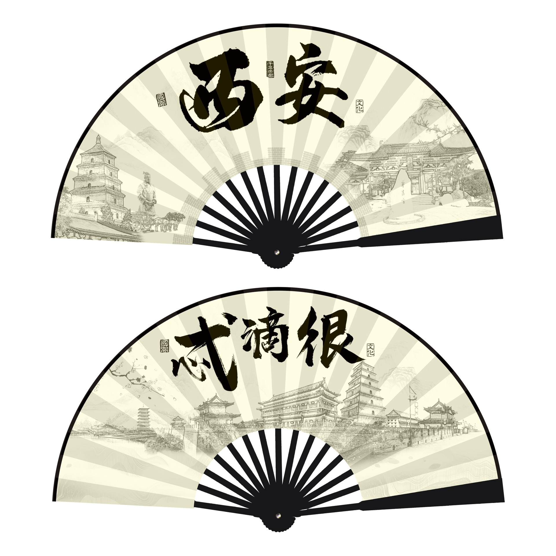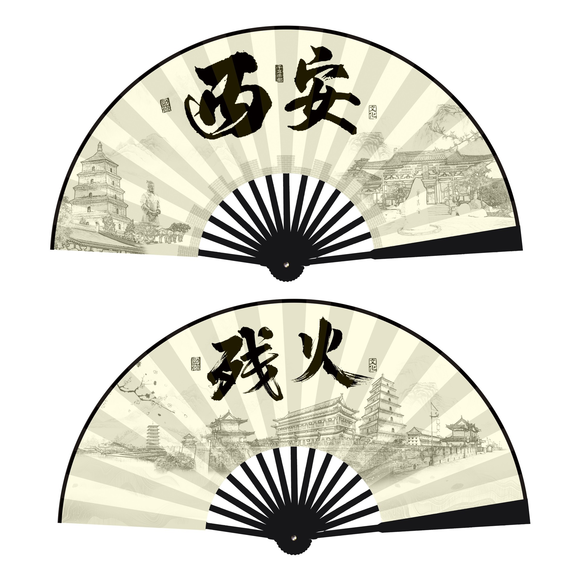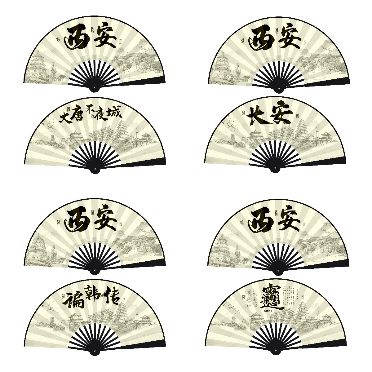 西安新款10寸国潮语绢布扇子酒吧蹦迪广告景区中国风折扇厂家批发
