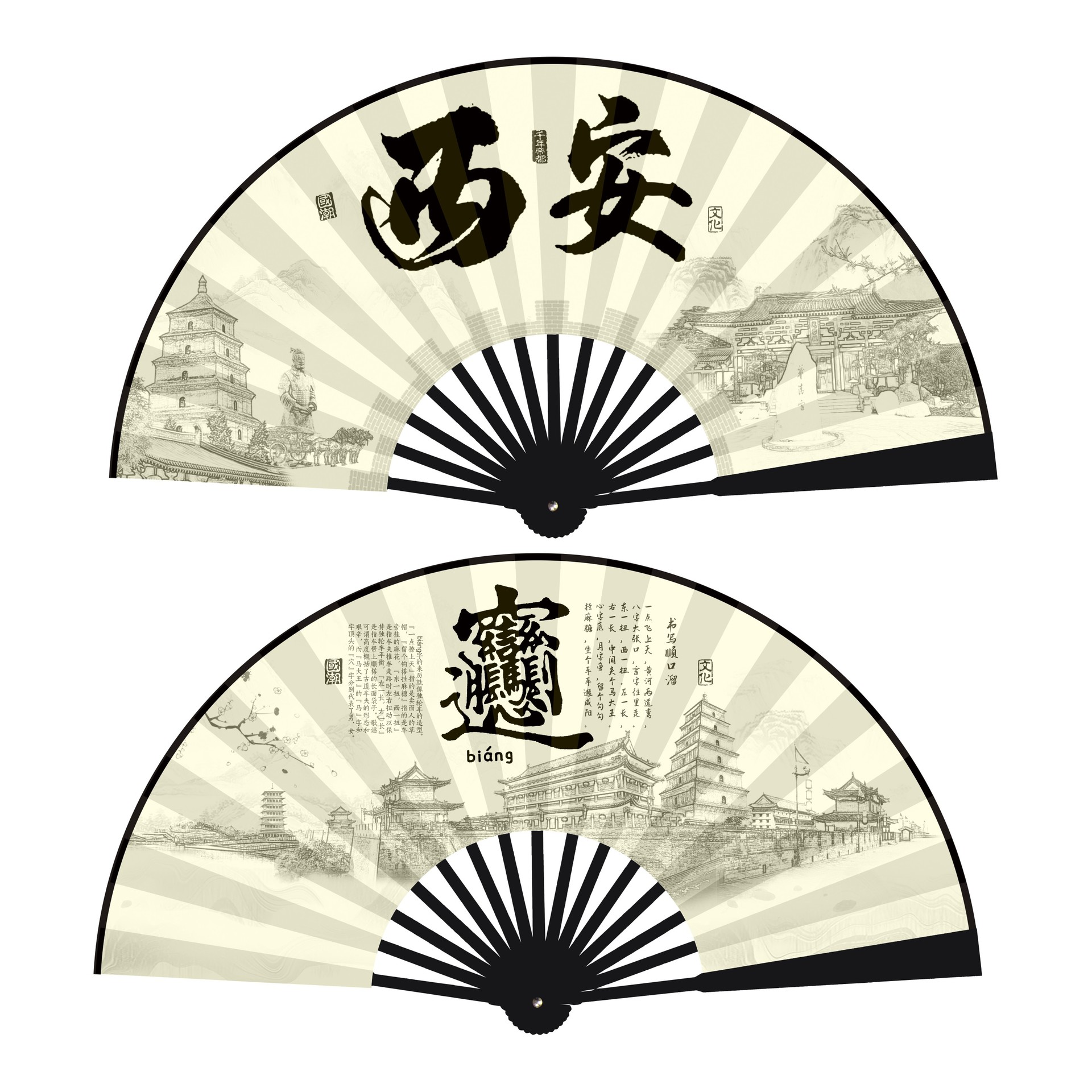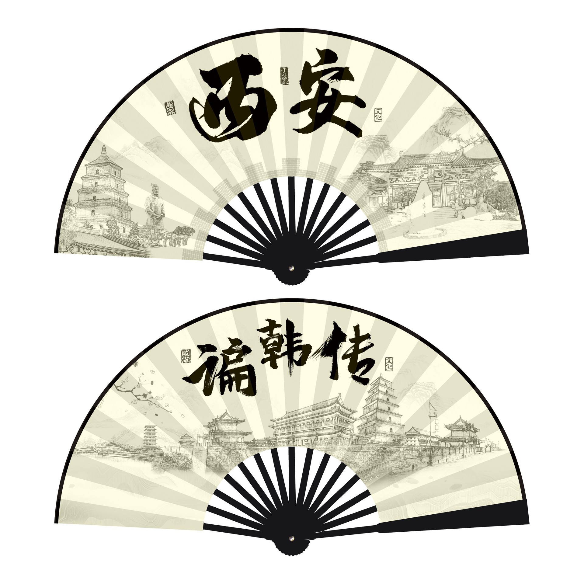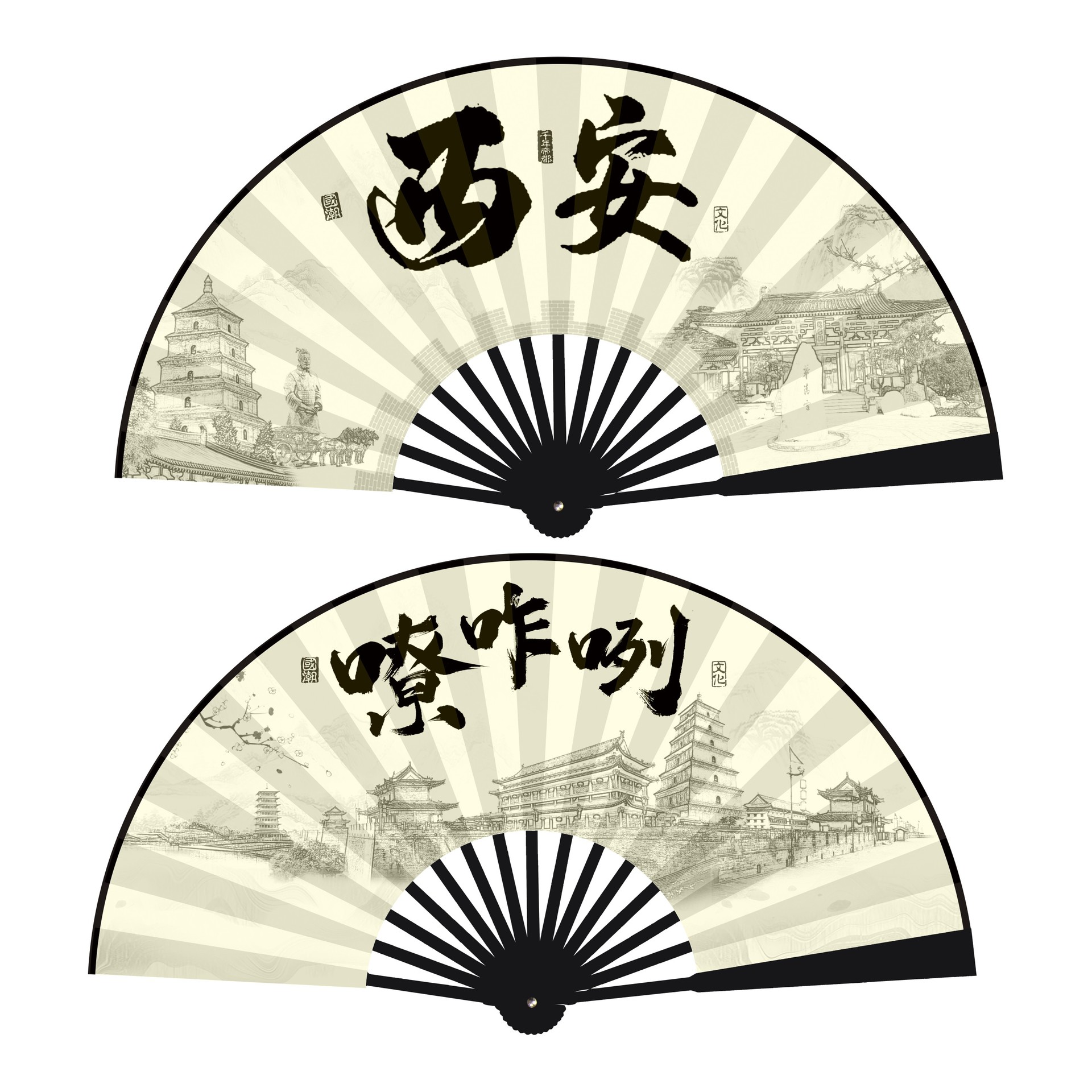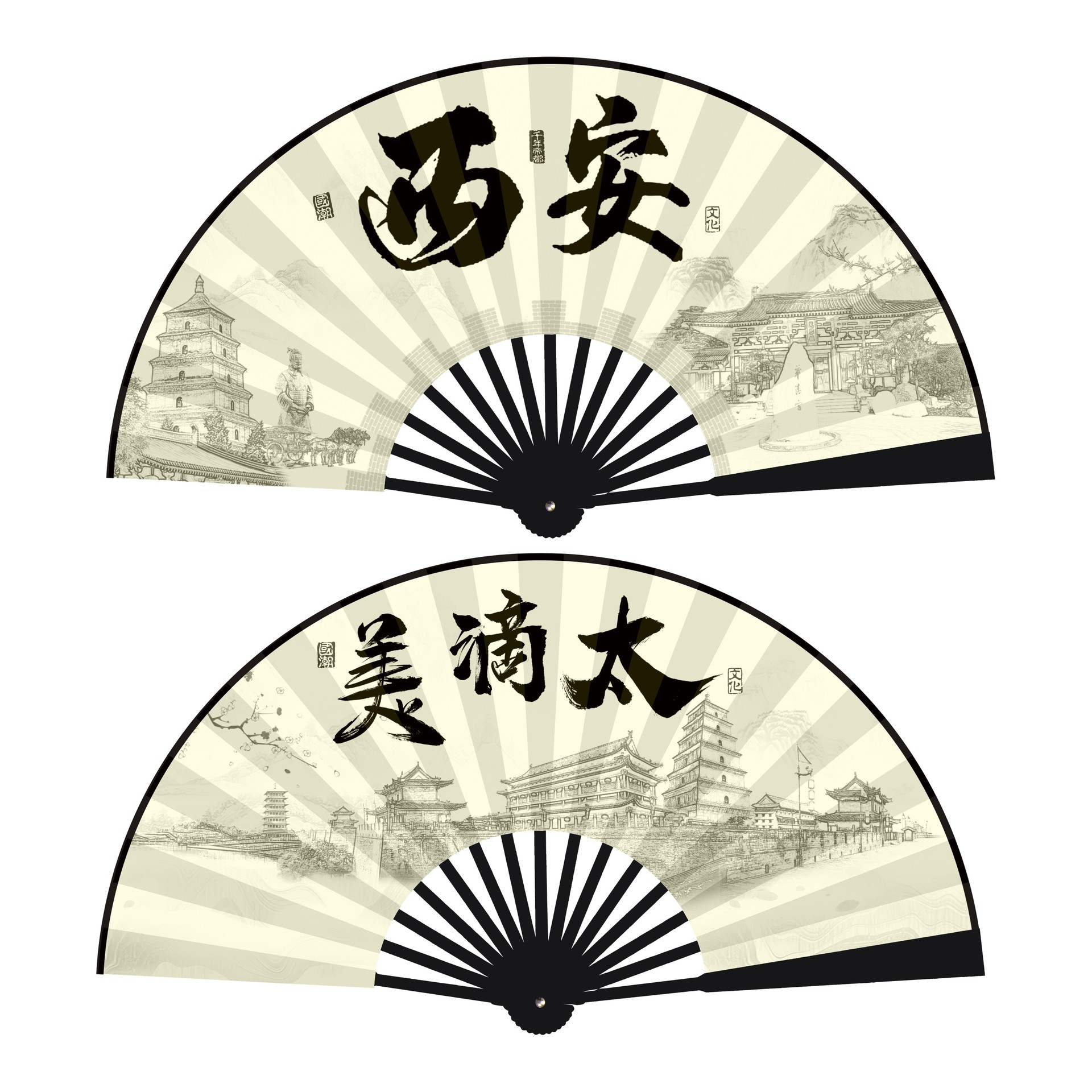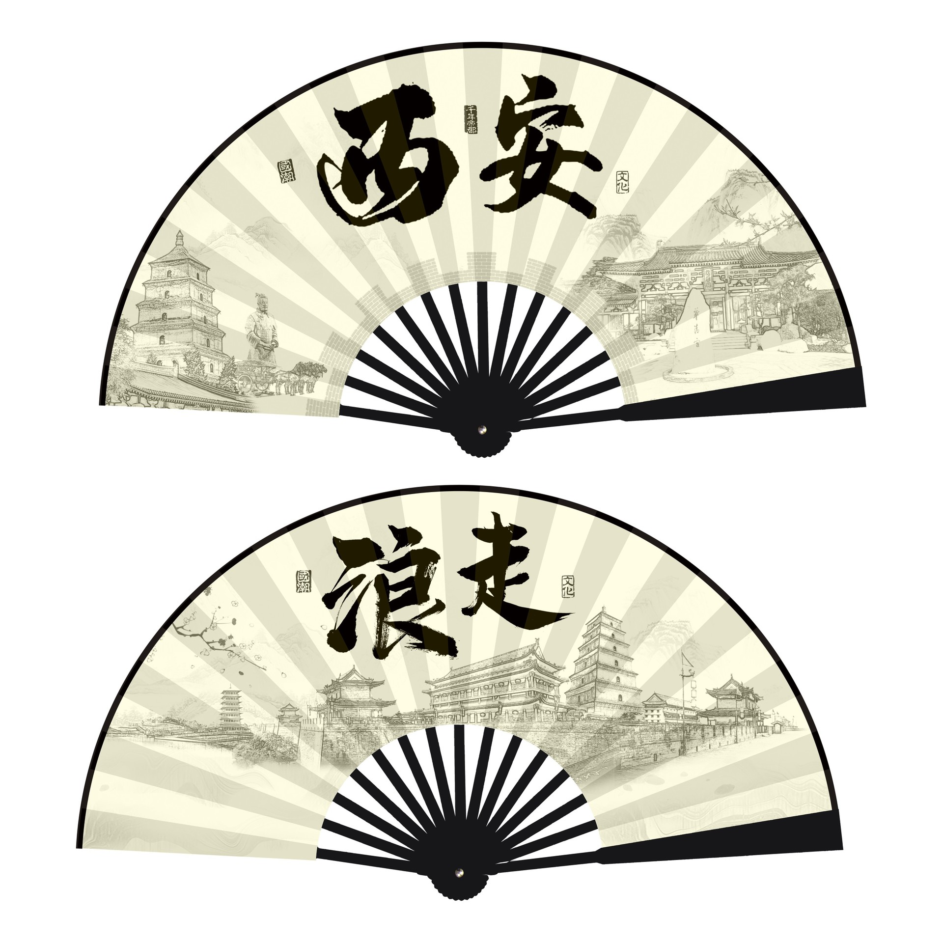 西安新款10寸国潮语绢布扇子酒吧蹦迪广告景区中国风折扇厂家批发
