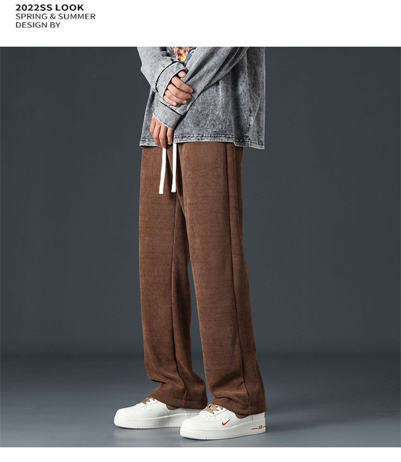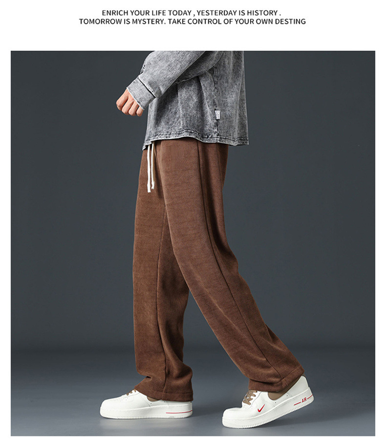灯芯绒裤子男士春季宽松直筒重磅卫裤男生阔腿垂感秋冬款休闲长裤