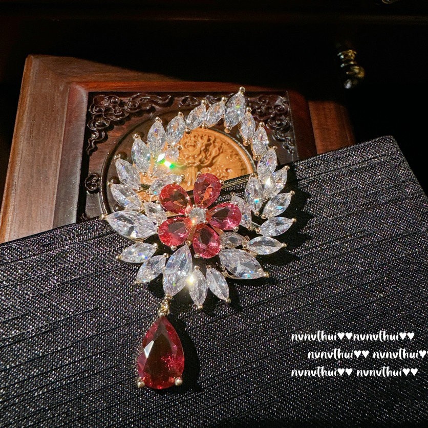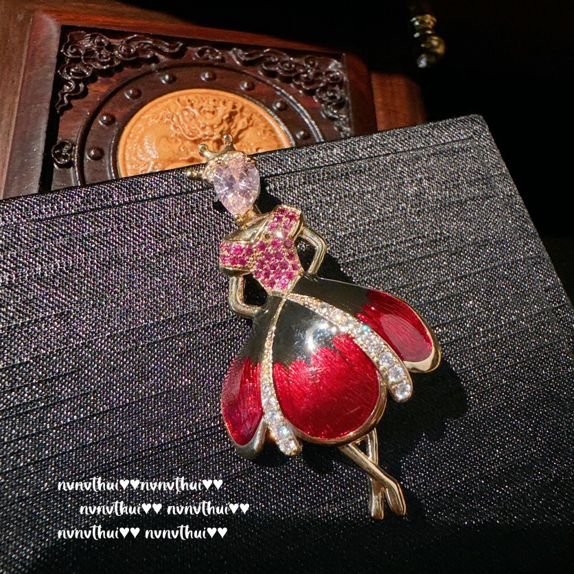 在逃公主胭脂红宝石蓬蓬裙胸针Vintage镀18K金 贵妃花环水滴胸针