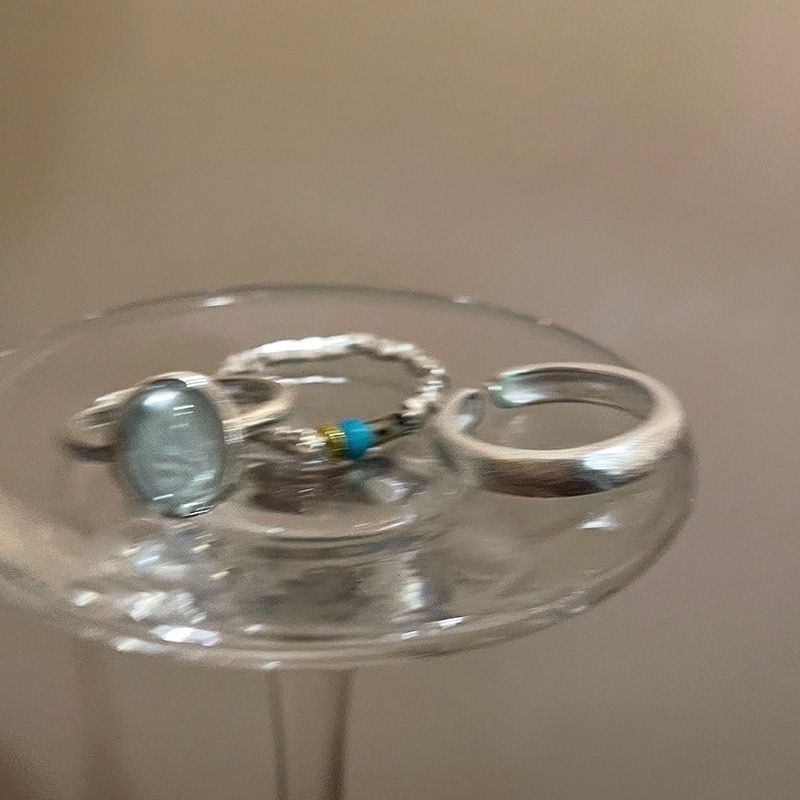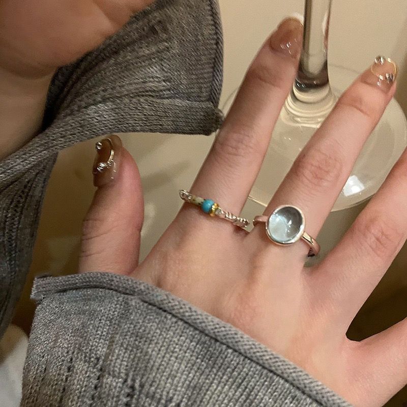 蓝眼泪碎银子开口戒指女冷淡风气质食指戒网红时尚个性闺蜜指环潮