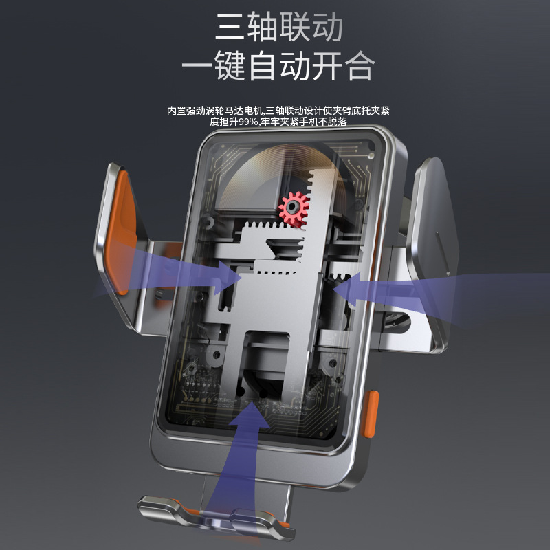 产品名称: 透明款车载无线充支架T11(三杆联动)