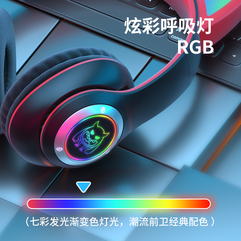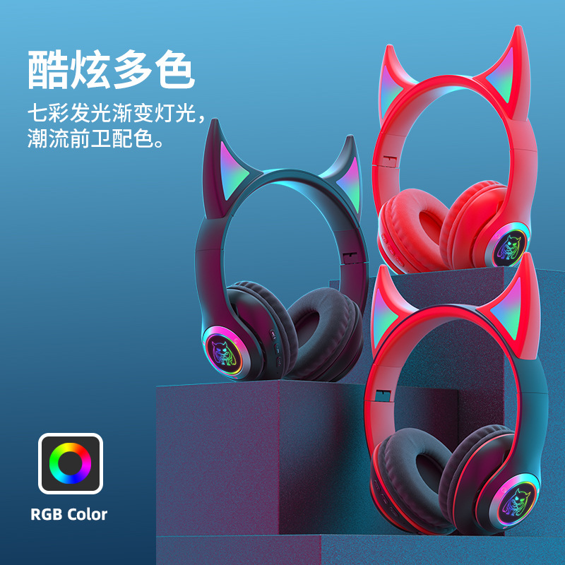 STN-29 新款小恶魔头戴式蓝牙耳机无线发光电脑电竞耳麦万圣跨境