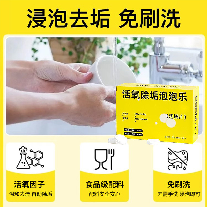 除垢泡泡乐泡腾片去污垢茶具除异味因子小苏打批发