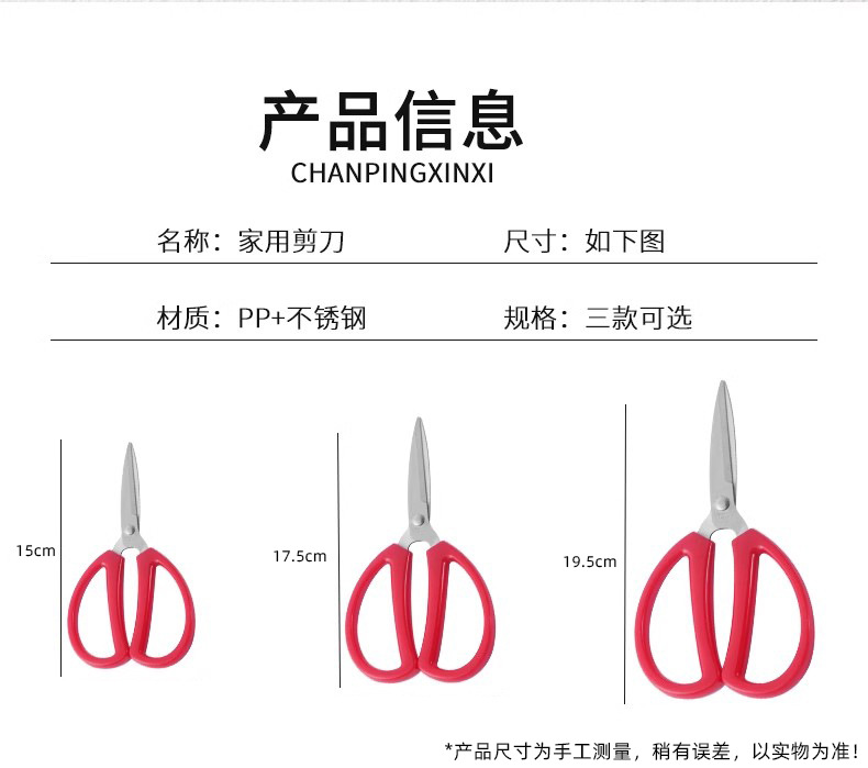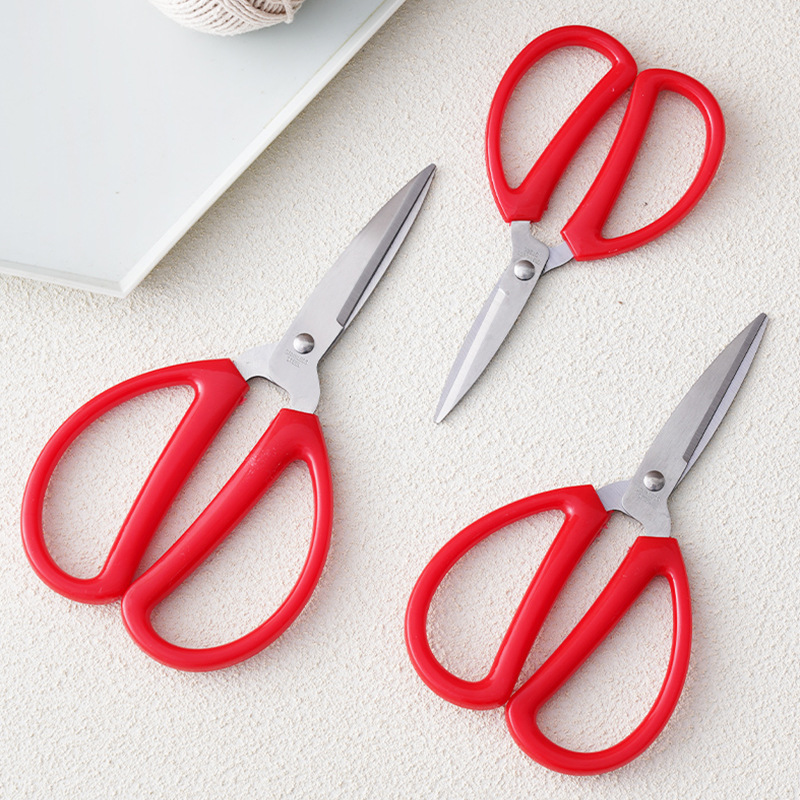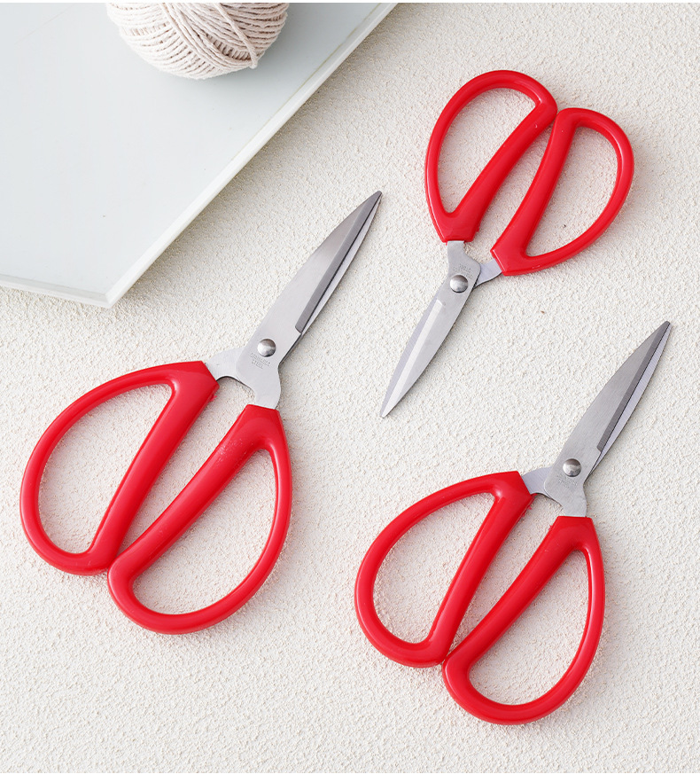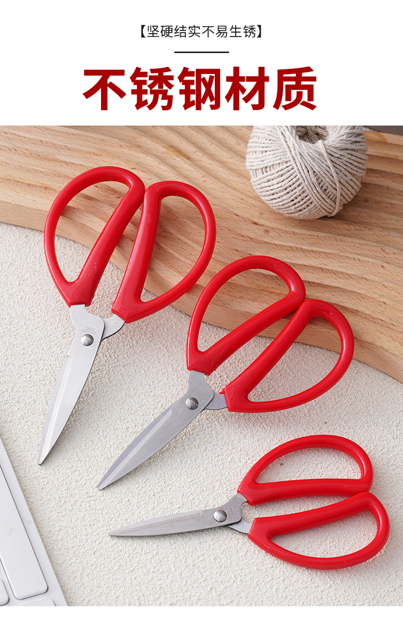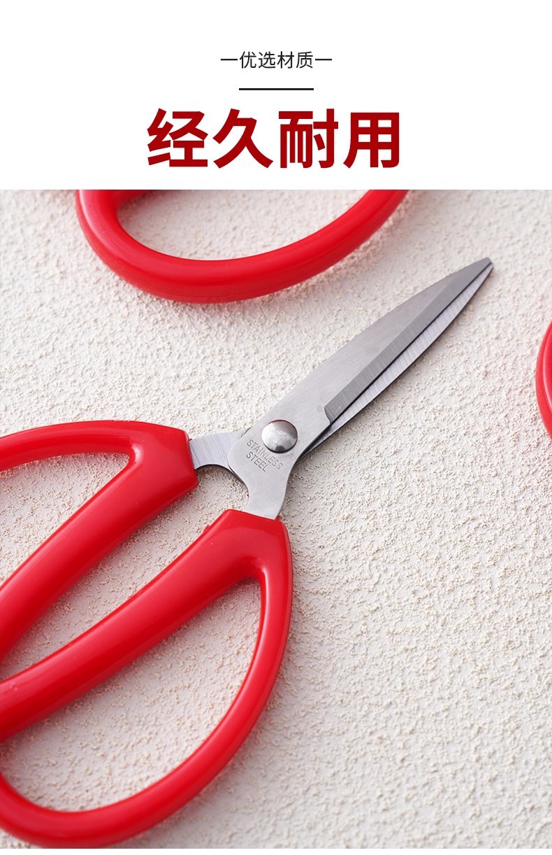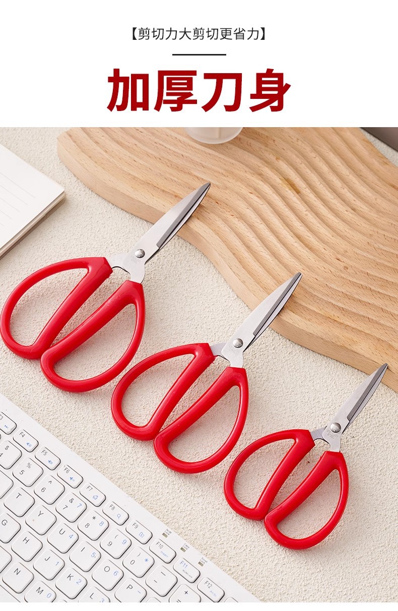 批发红色不锈钢家用剪办公剪厨房剪裁缝剪民用剪裁纸文具剪刀厂家