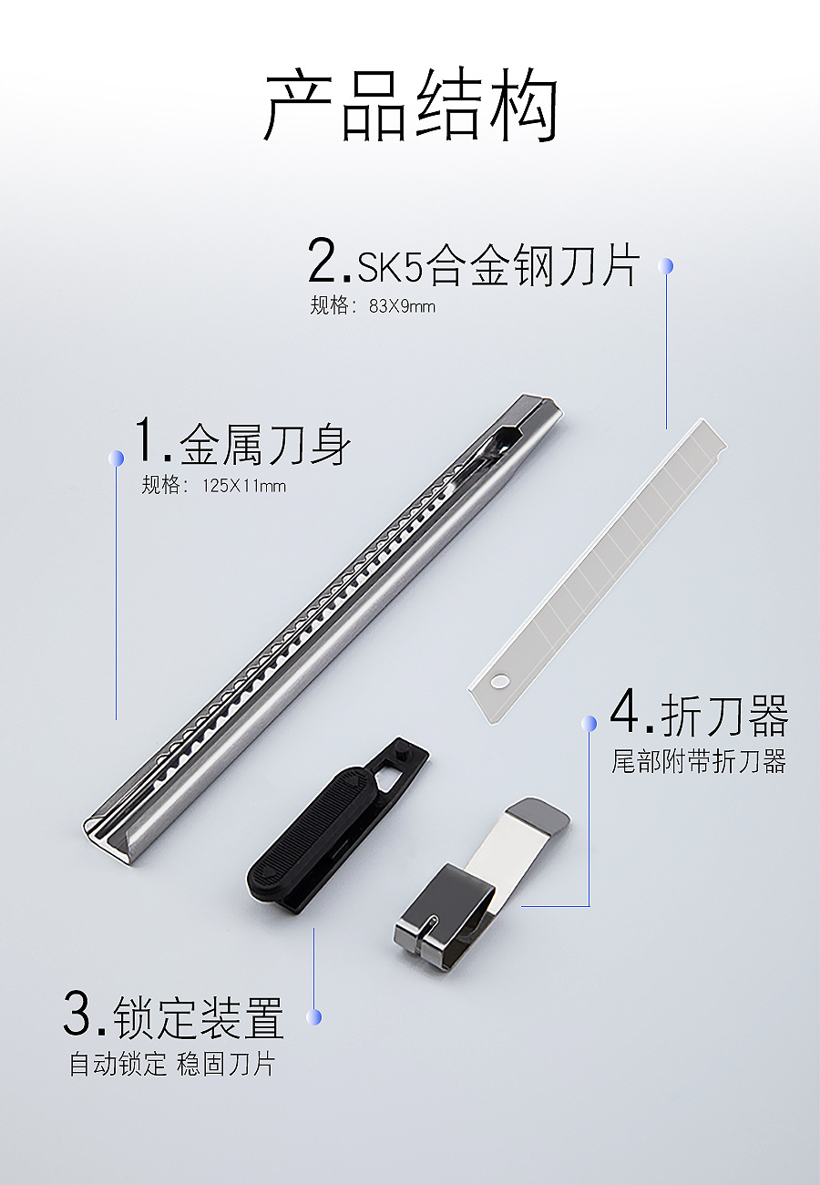 P金属美工刀加厚刀片不锈钢大号壁纸刀小号裁纸刀学生文具手工刀