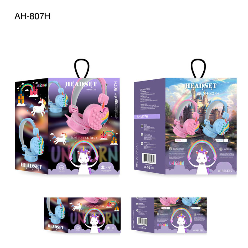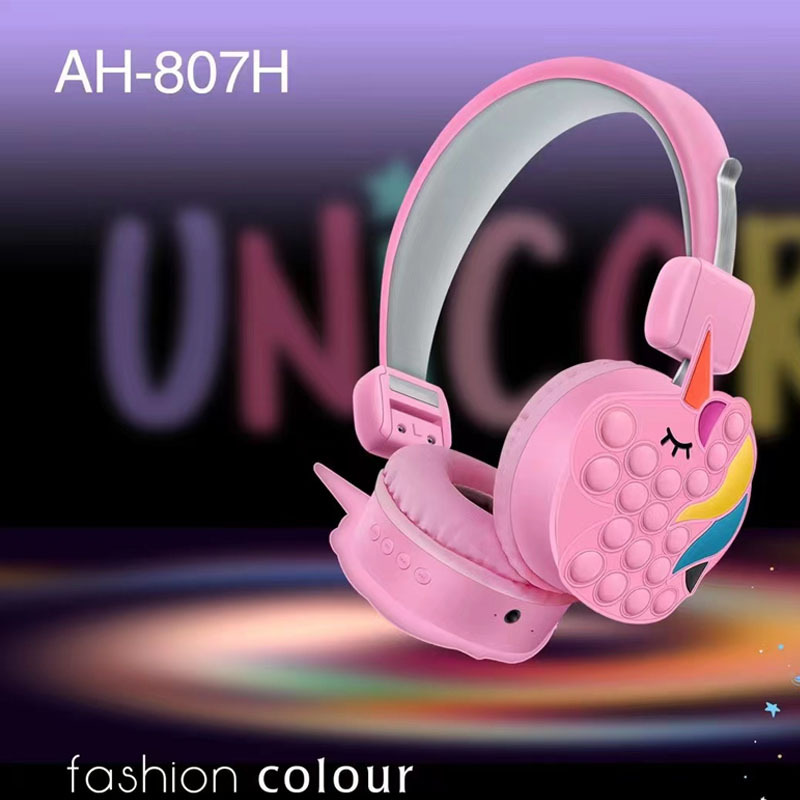AH-807H头戴式耳机 跨境新款独角兽解压儿童可爱卡通手机蓝牙耳麦
