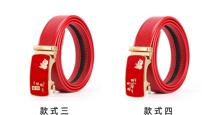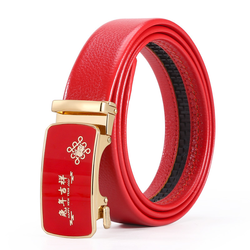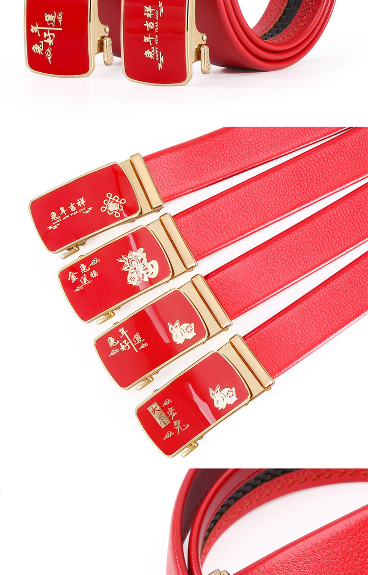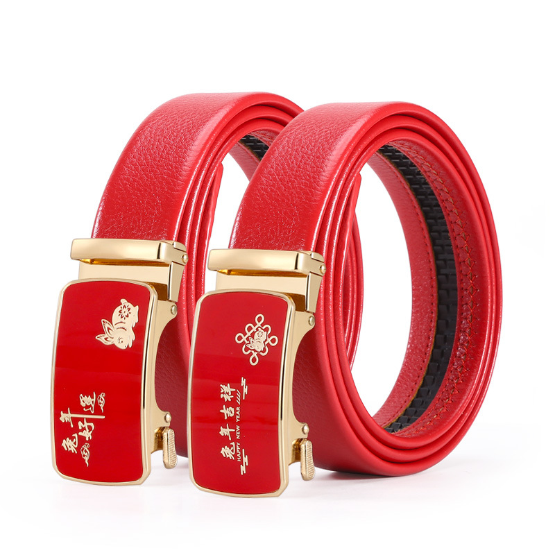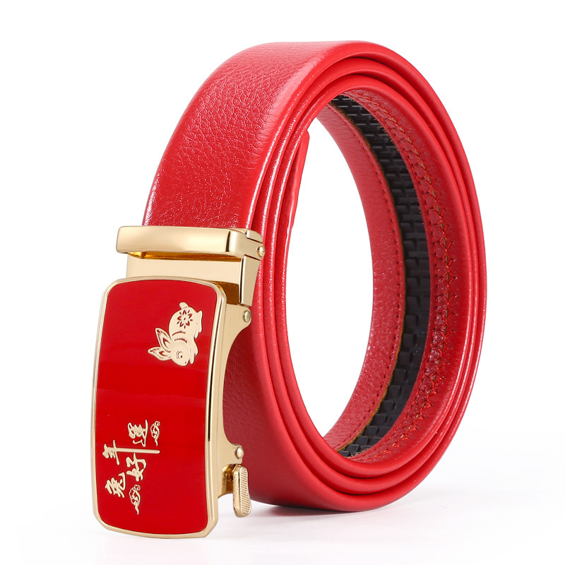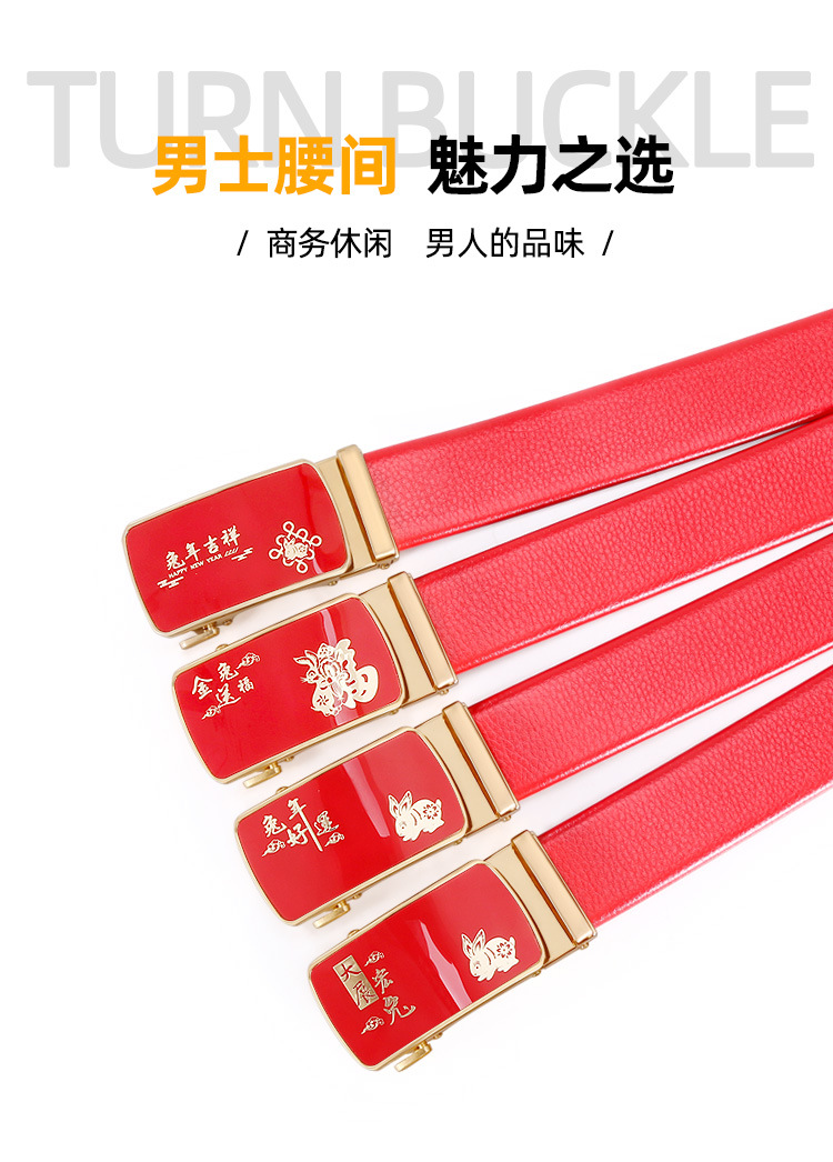新款中国红男士皮带兔福本命年红色腰带 休闲中青年裤带厂家批发