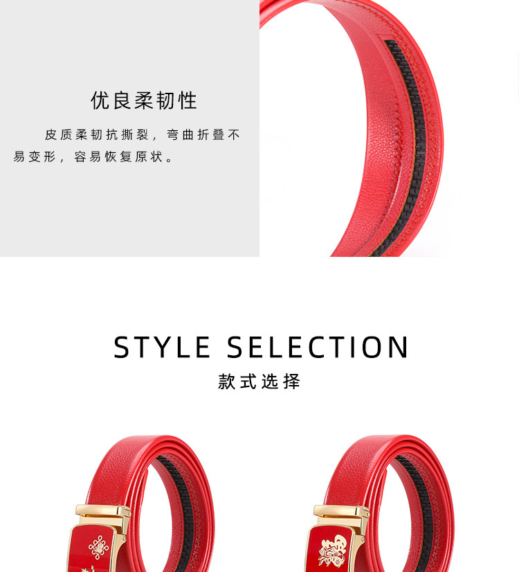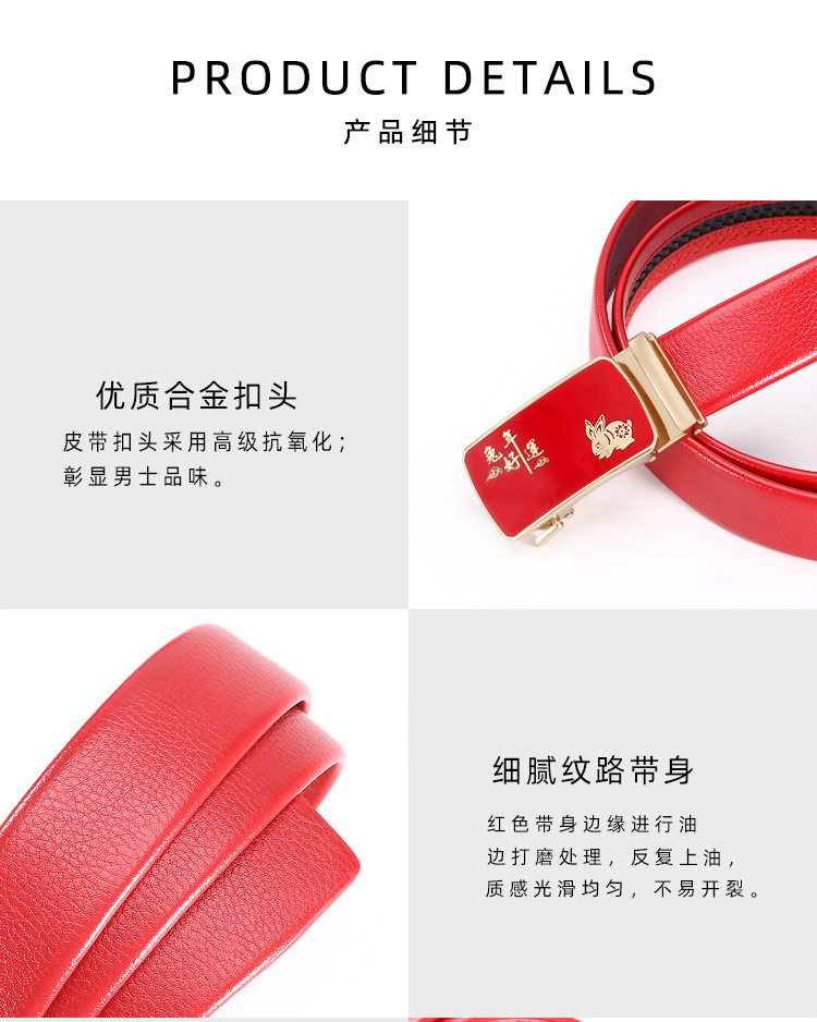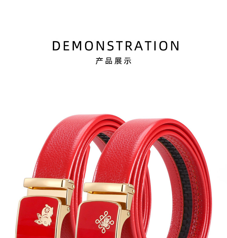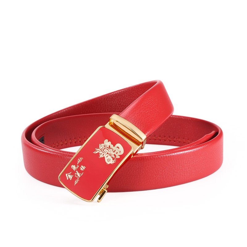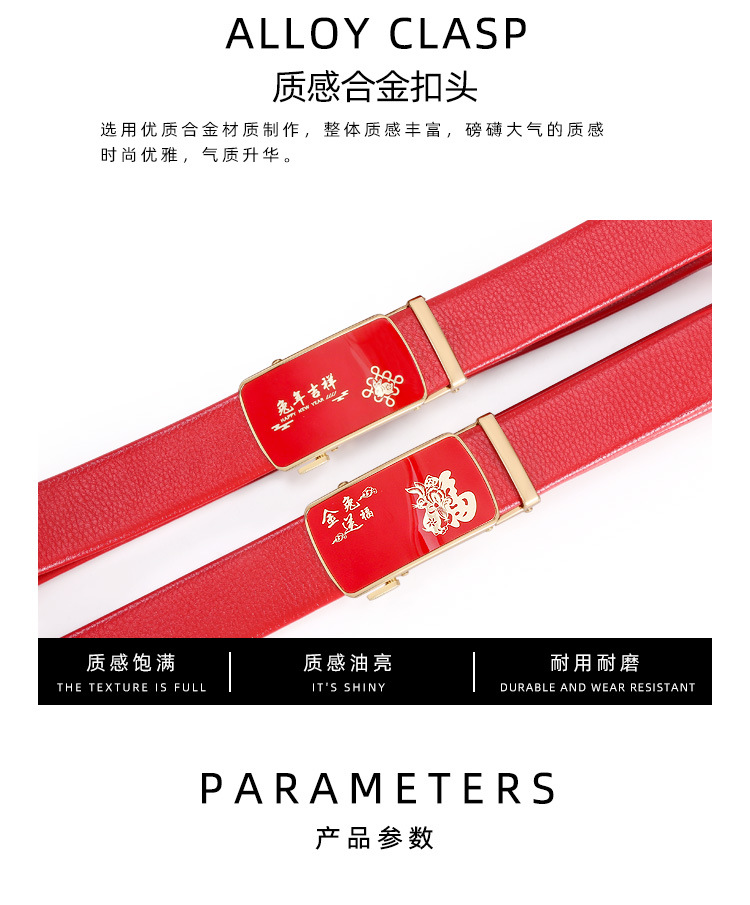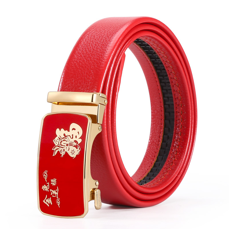 新款中国红男士皮带兔福本命年红色腰带 休闲中青年裤带厂家批发