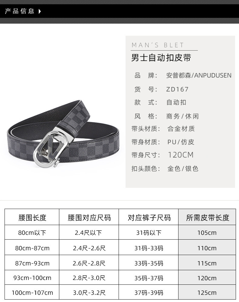 爆款皮带男士时尚文艺字母自动扣潮休闲裤带百搭商务腰带厂家批发