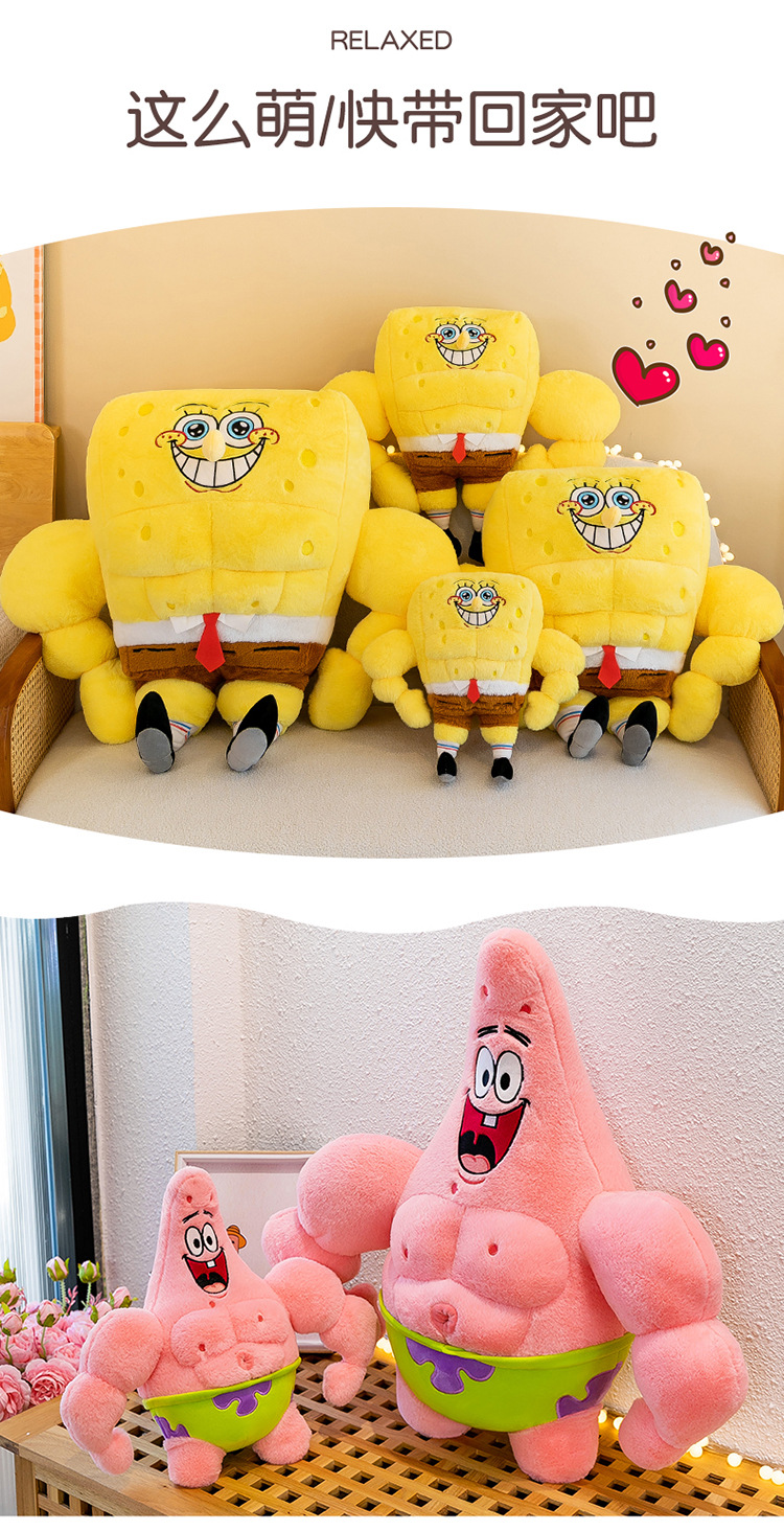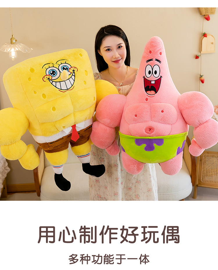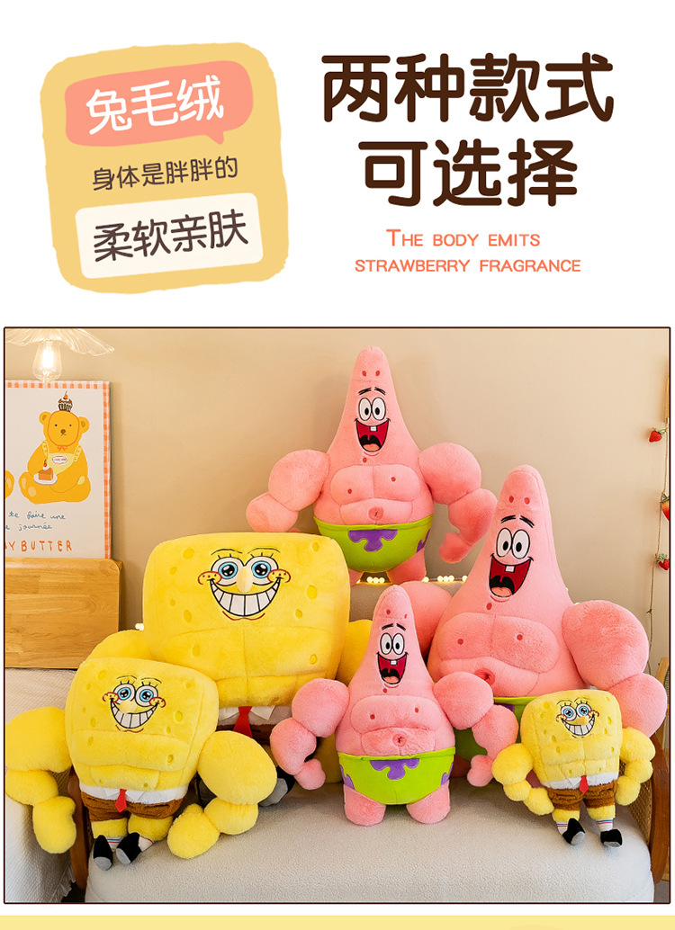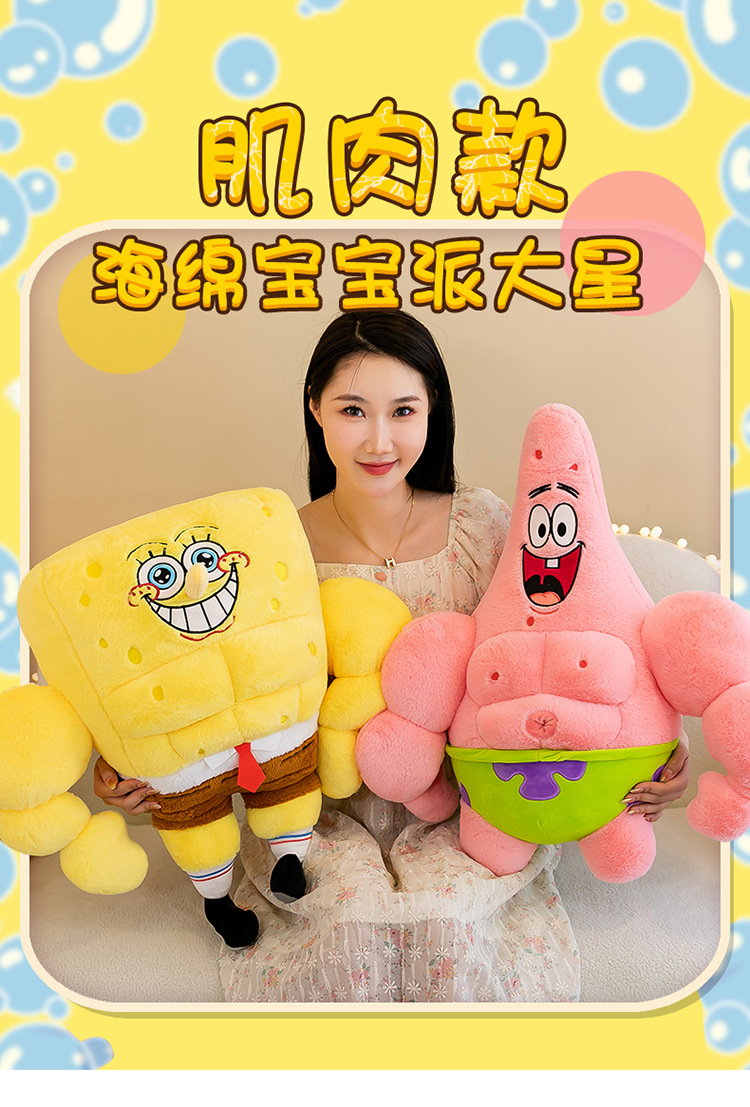 动物肌肉海绵宝宝毛绒玩具抱枕批发可爱派大星玩偶公仔送儿童娃娃