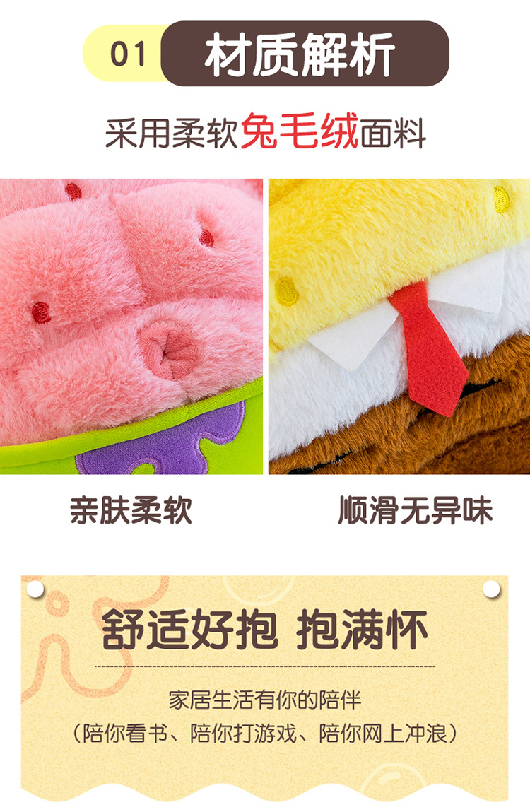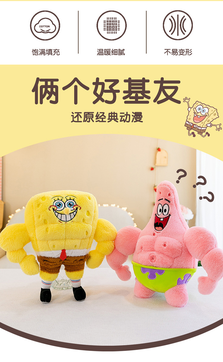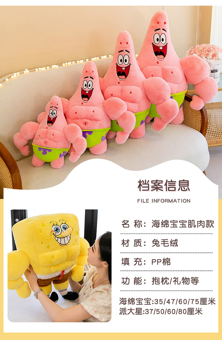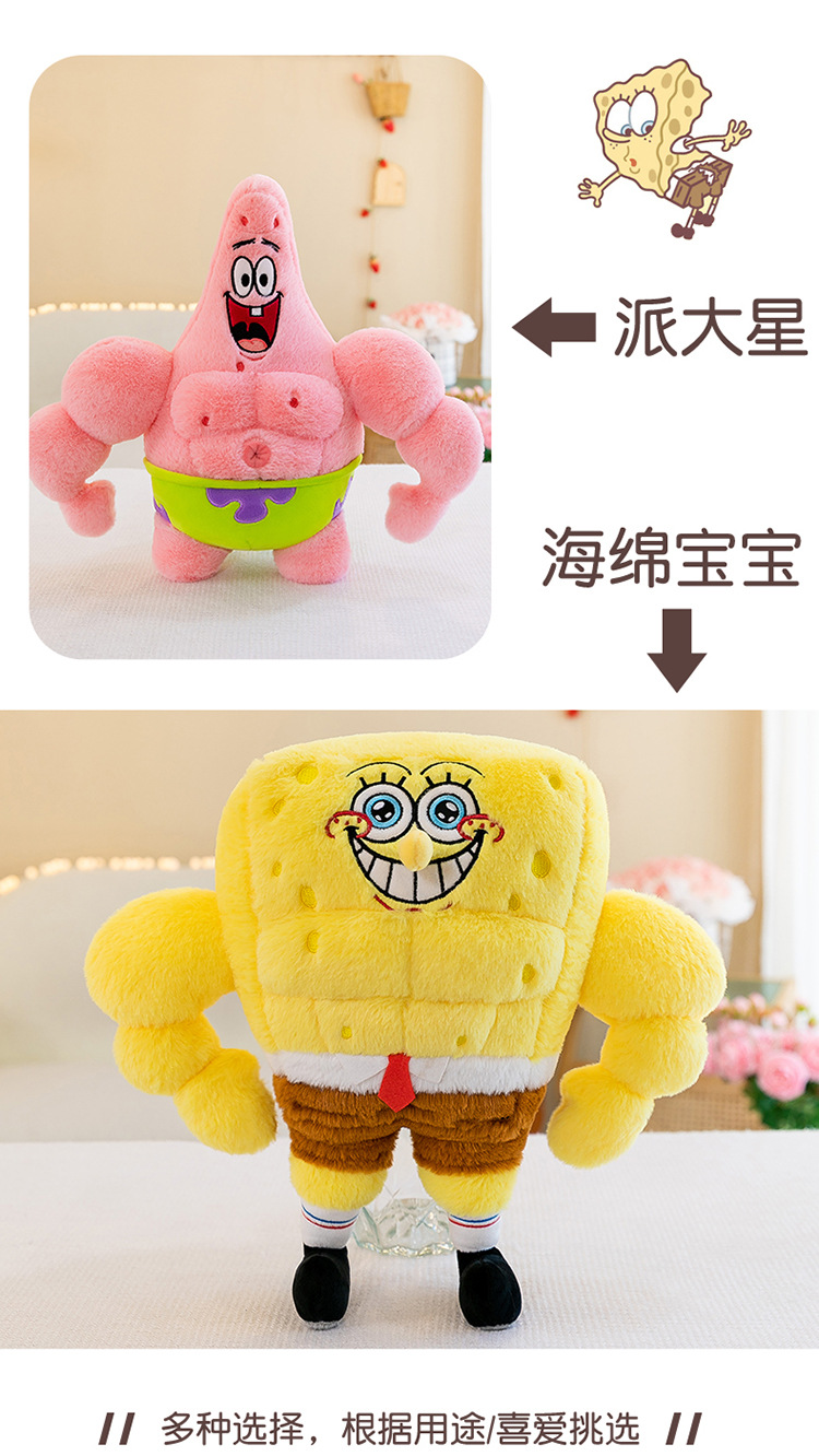 动物肌肉海绵宝宝毛绒玩具抱枕批发可爱派大星玩偶公仔送儿童娃娃