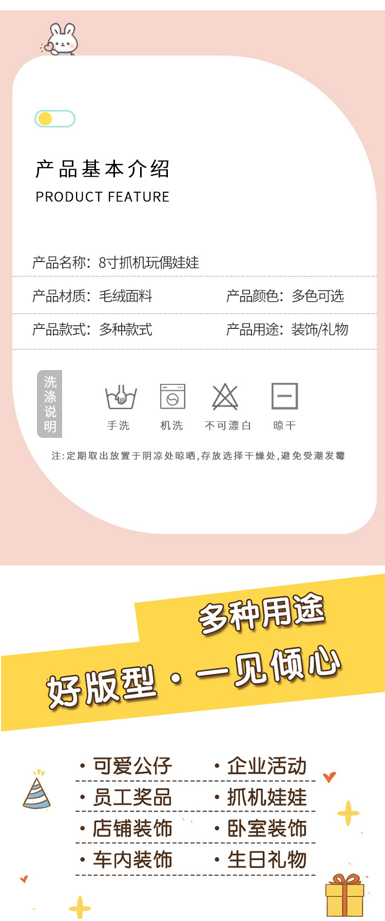 毛绒玩具批发商场抓机娃娃卡通可爱婚礼抛洒娃娃玩偶地推套圈公仔