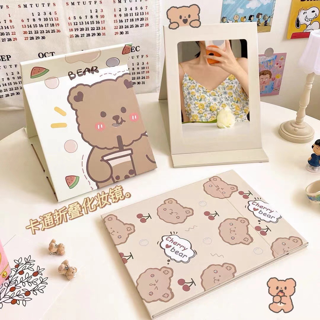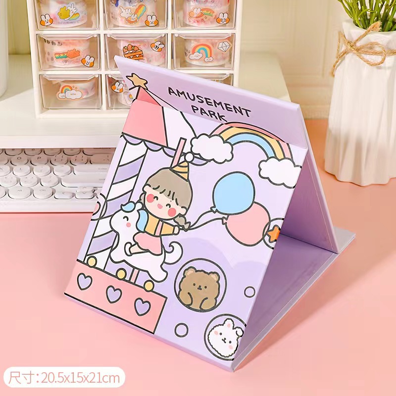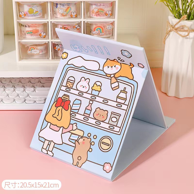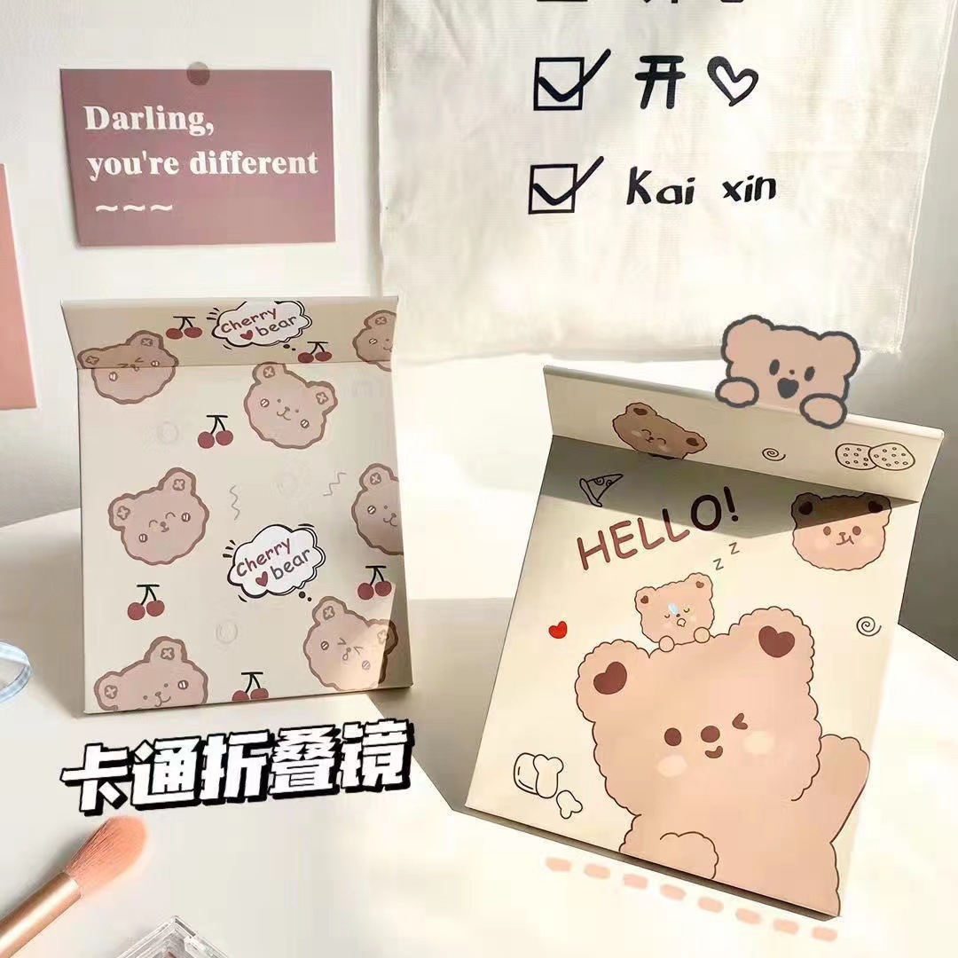 可爱小镜子女学生宿舍桌面可立大号折叠化妆镜便携台式家用梳妆镜