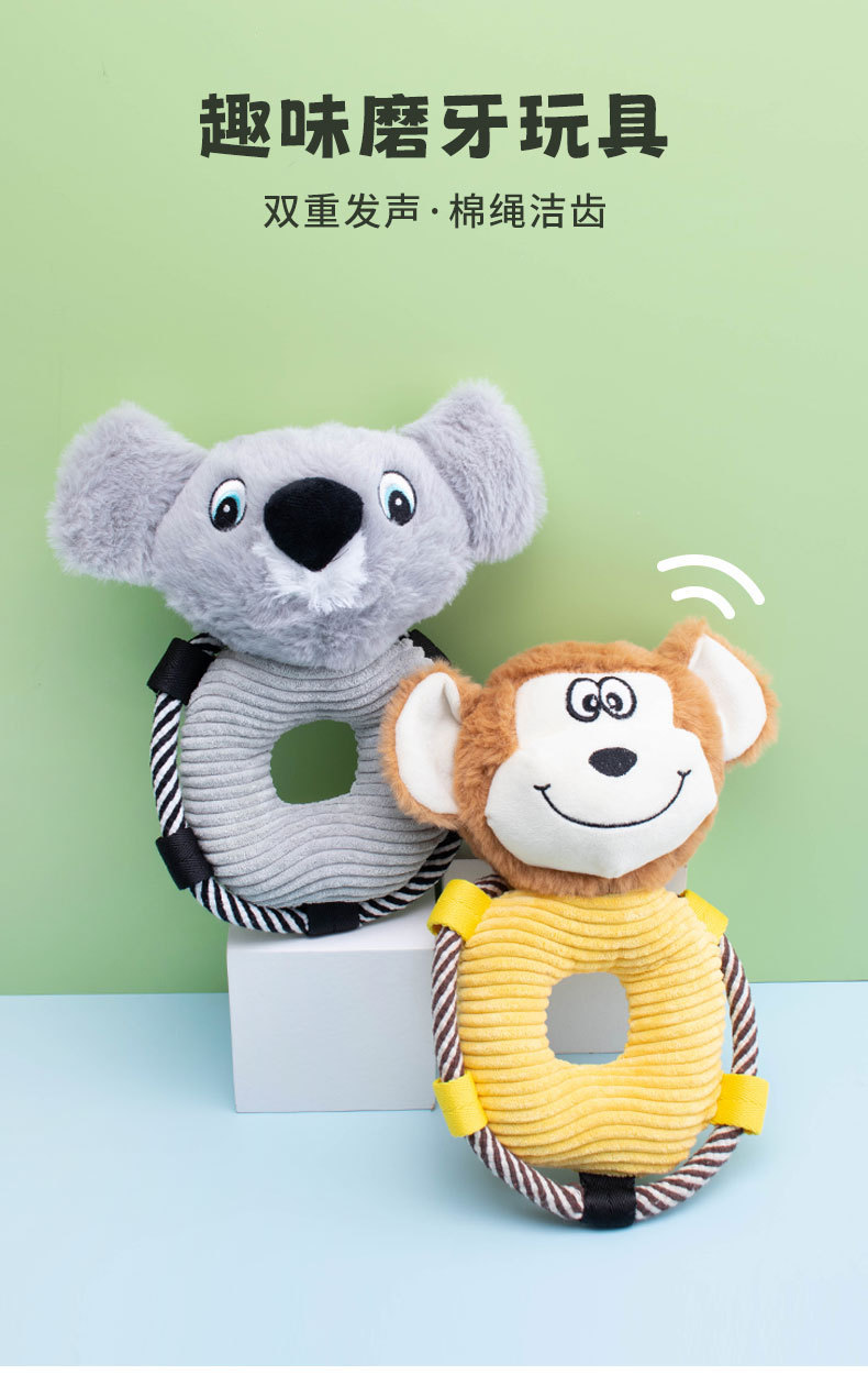 跨境新品宠物毛绒玩具棉绳考拉猴子狗狗磨牙解闷发声玩具解闷神器
