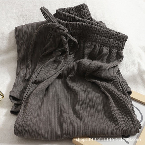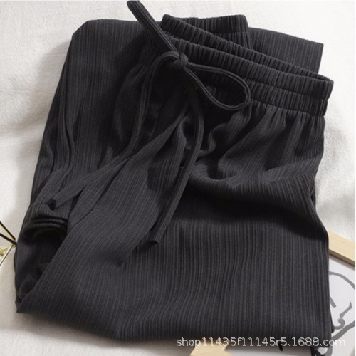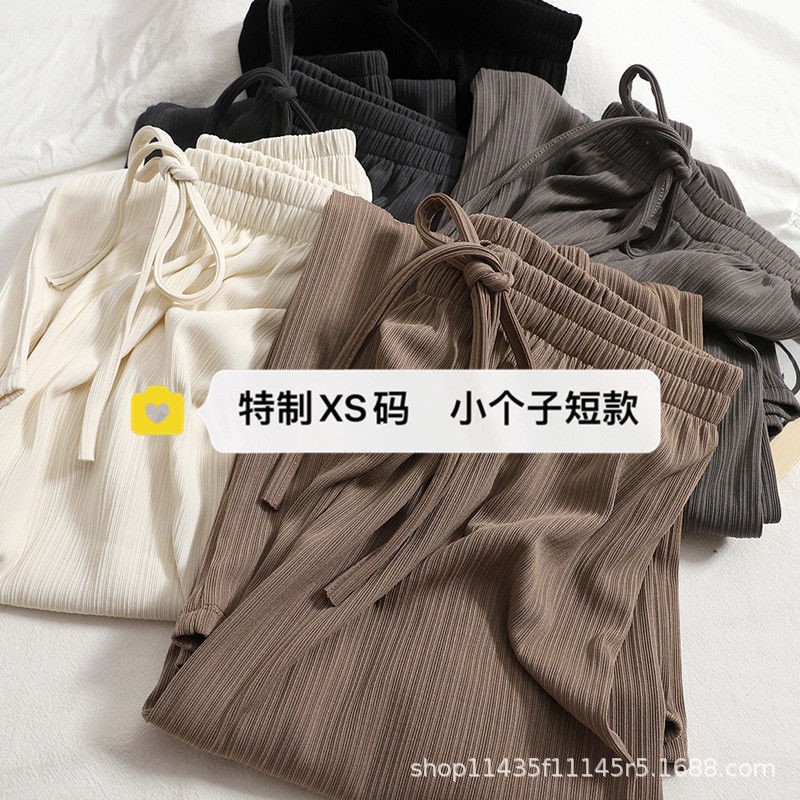运动裤胖MM大码大码小个子裤子休闲宽松高腰冰丝直筒阔腿裤春夏