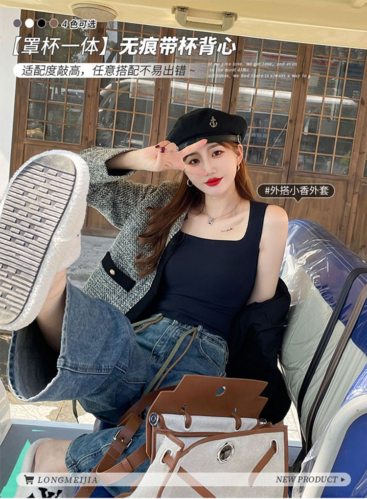 夏季无痕冰丝一体式美背内衣女士裹胸抹胸宽肩方领吊带背心外穿薄