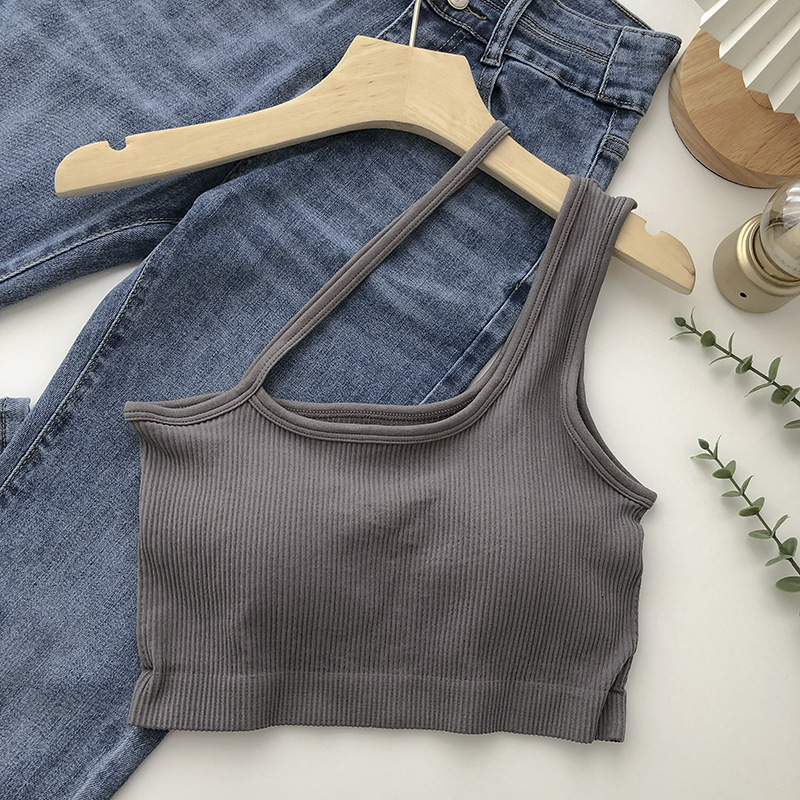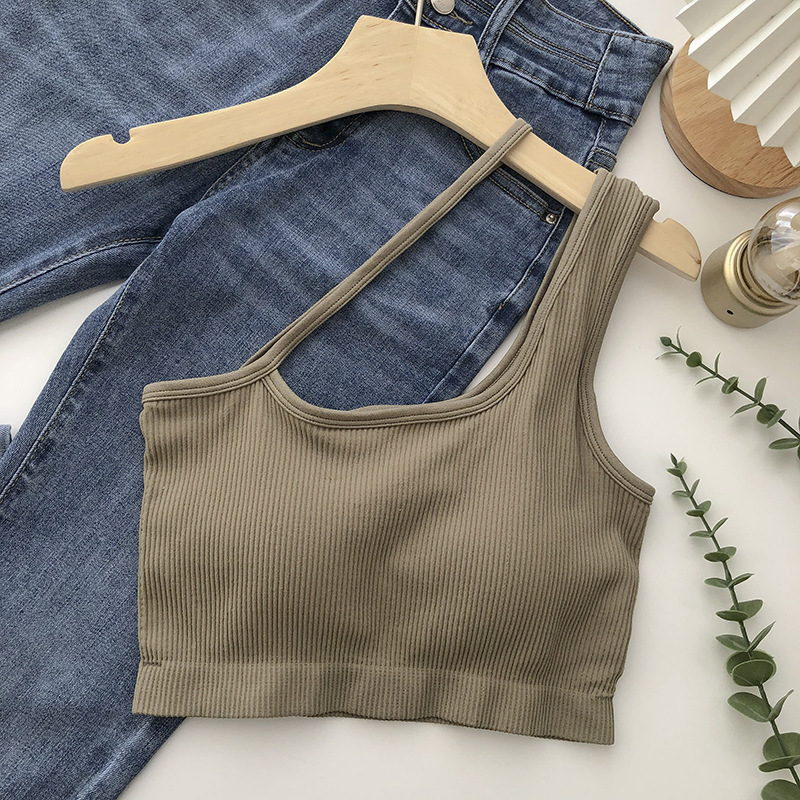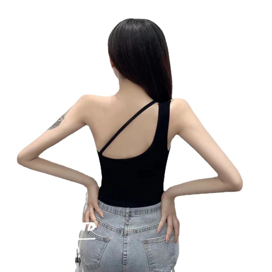 美背辣妹吊带背心抹胸斜肩带文胸内衣女聚拢一体胸垫裹胸性感外穿