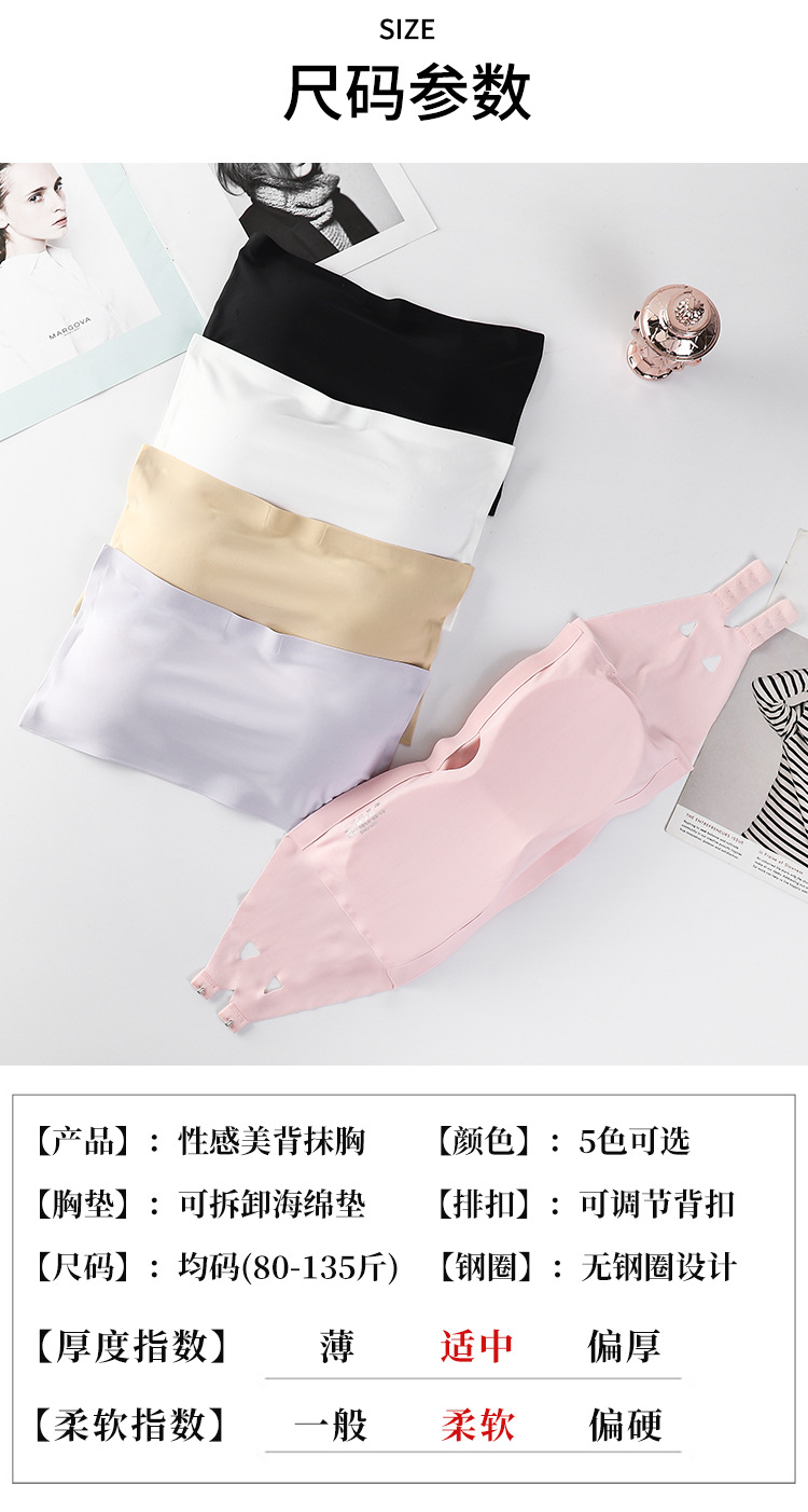 跨境冰丝抹胸美背内衣女打底无肩带裹胸少女无痕防走光一字围排扣