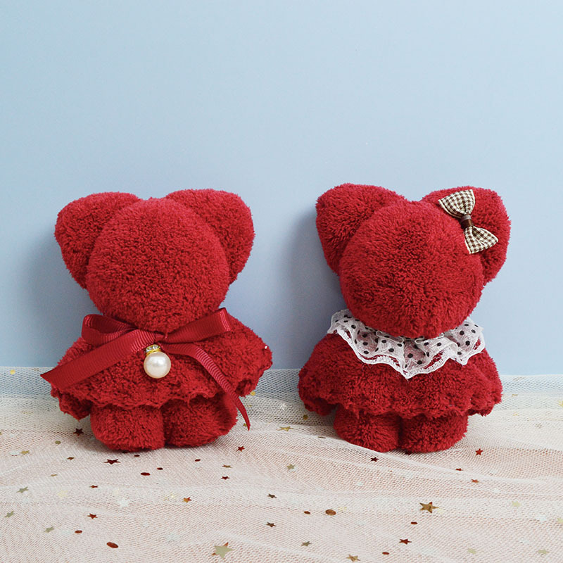 小熊毛巾伴手礼结婚庆红色喜铺喜糖用品满月生日回礼品礼物批发