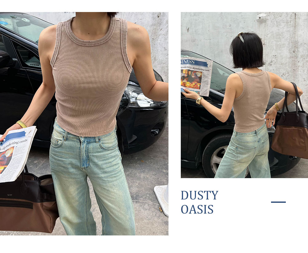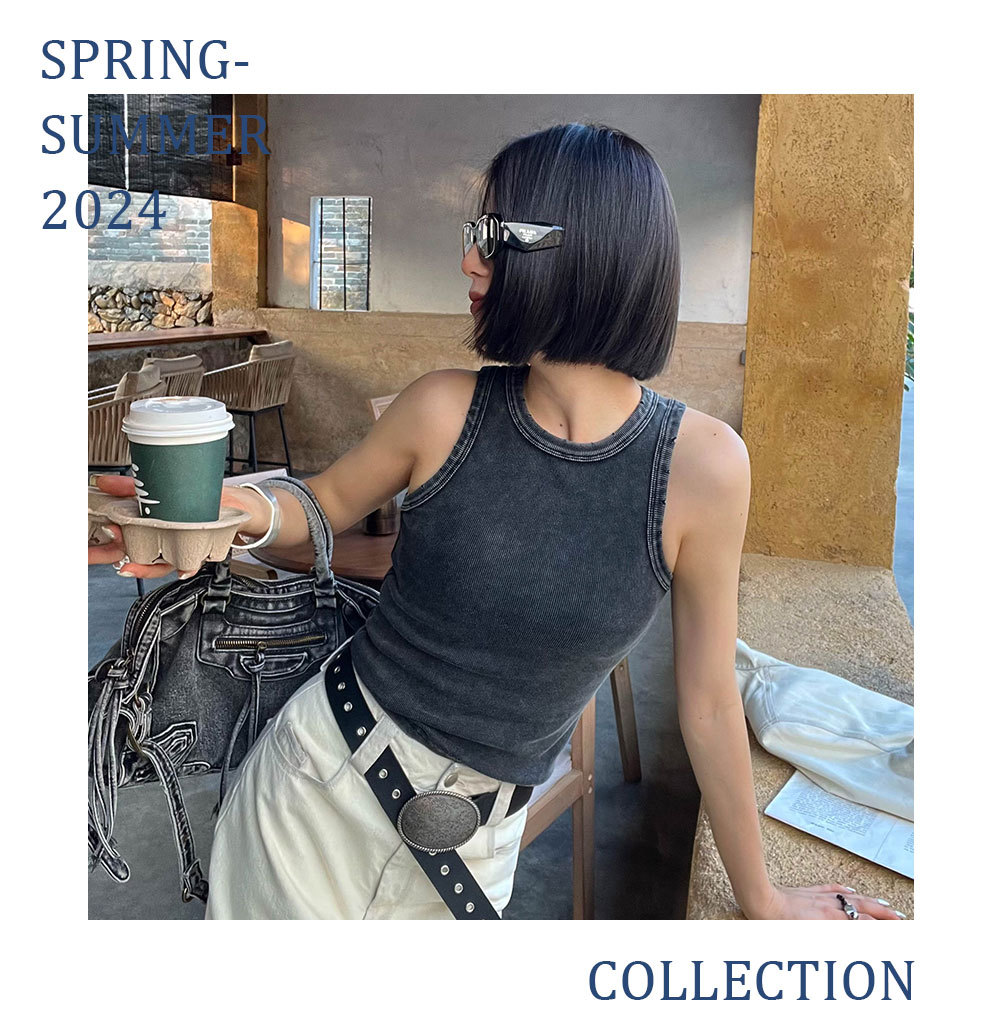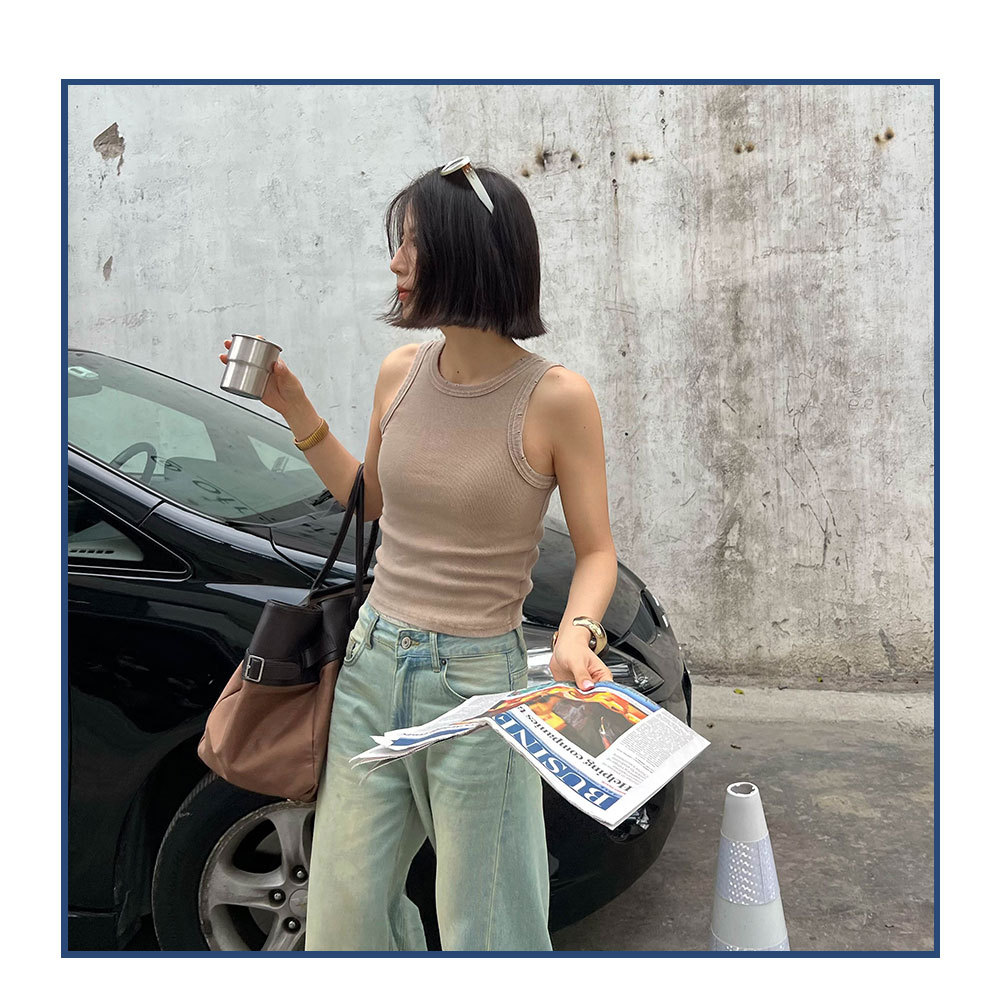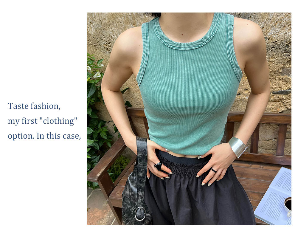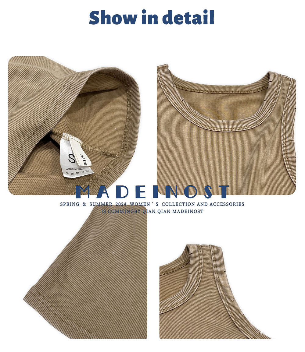 MADEINOST2024春季美式休闲复古破坏感水洗做旧螺纹背心女外穿