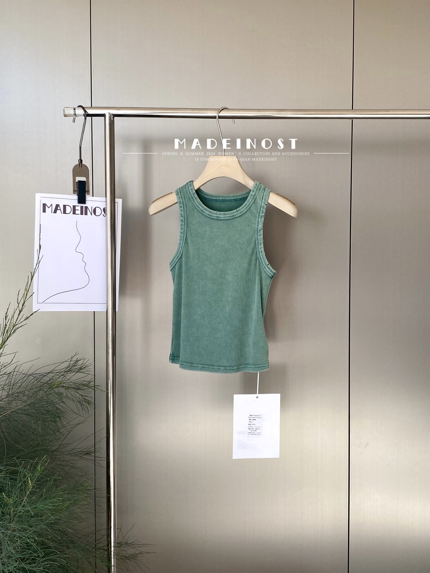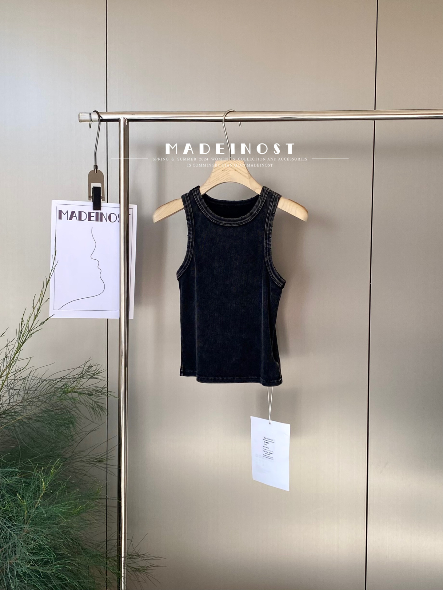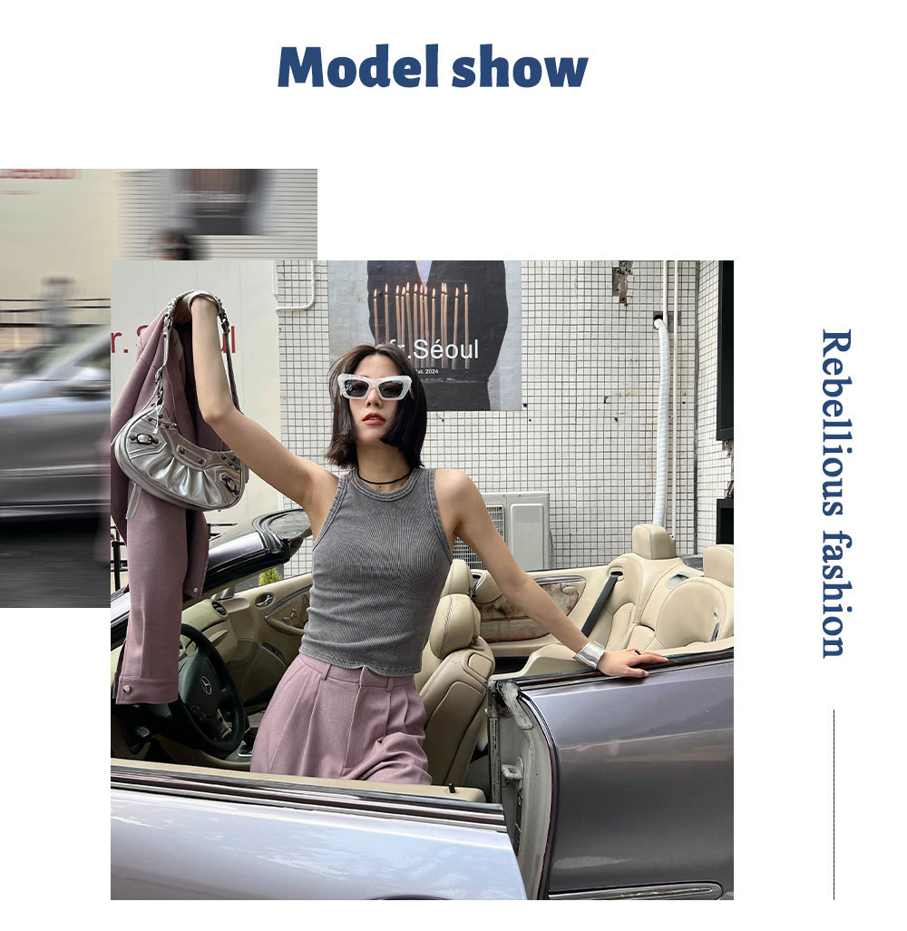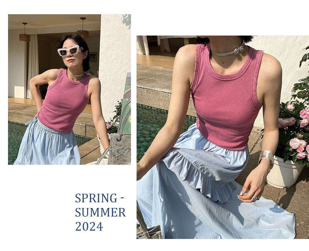 MADEINOST2024春季美式休闲复古破坏感水洗做旧螺纹背心女外穿
