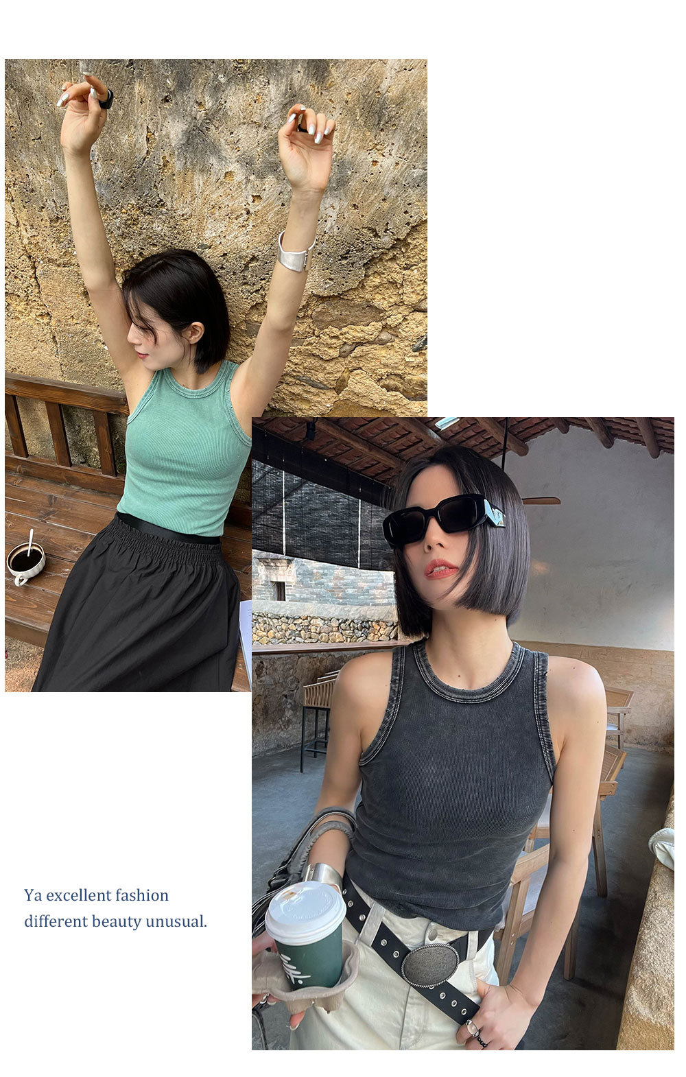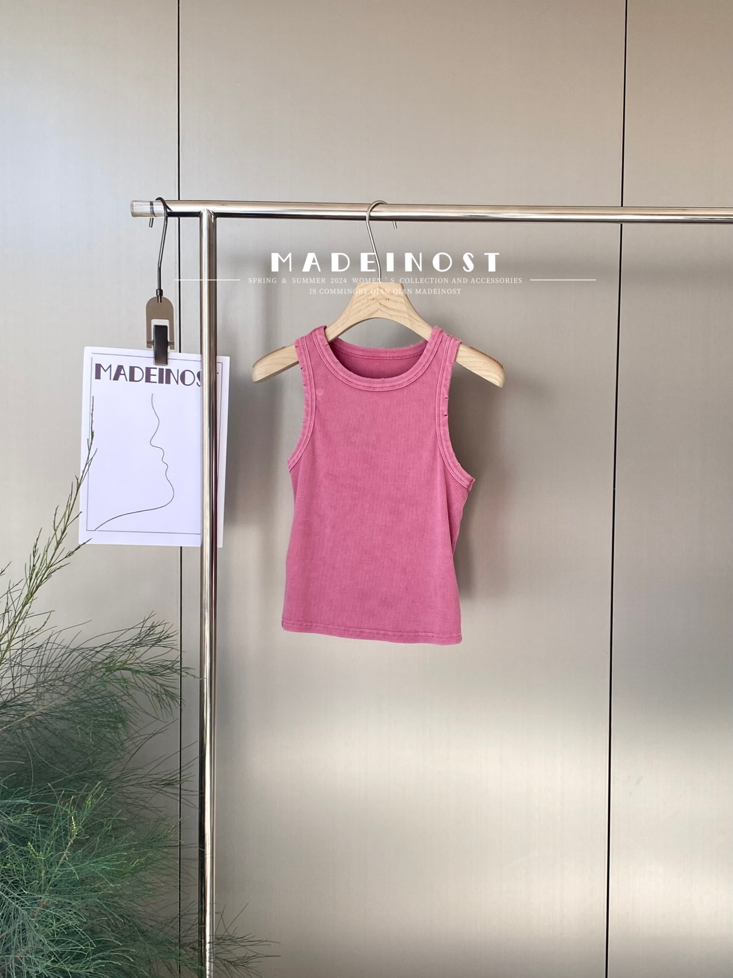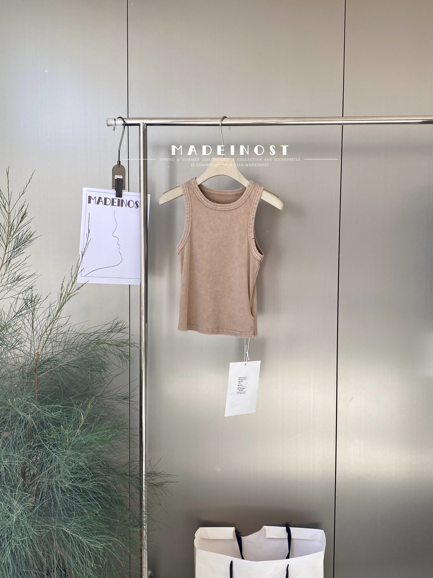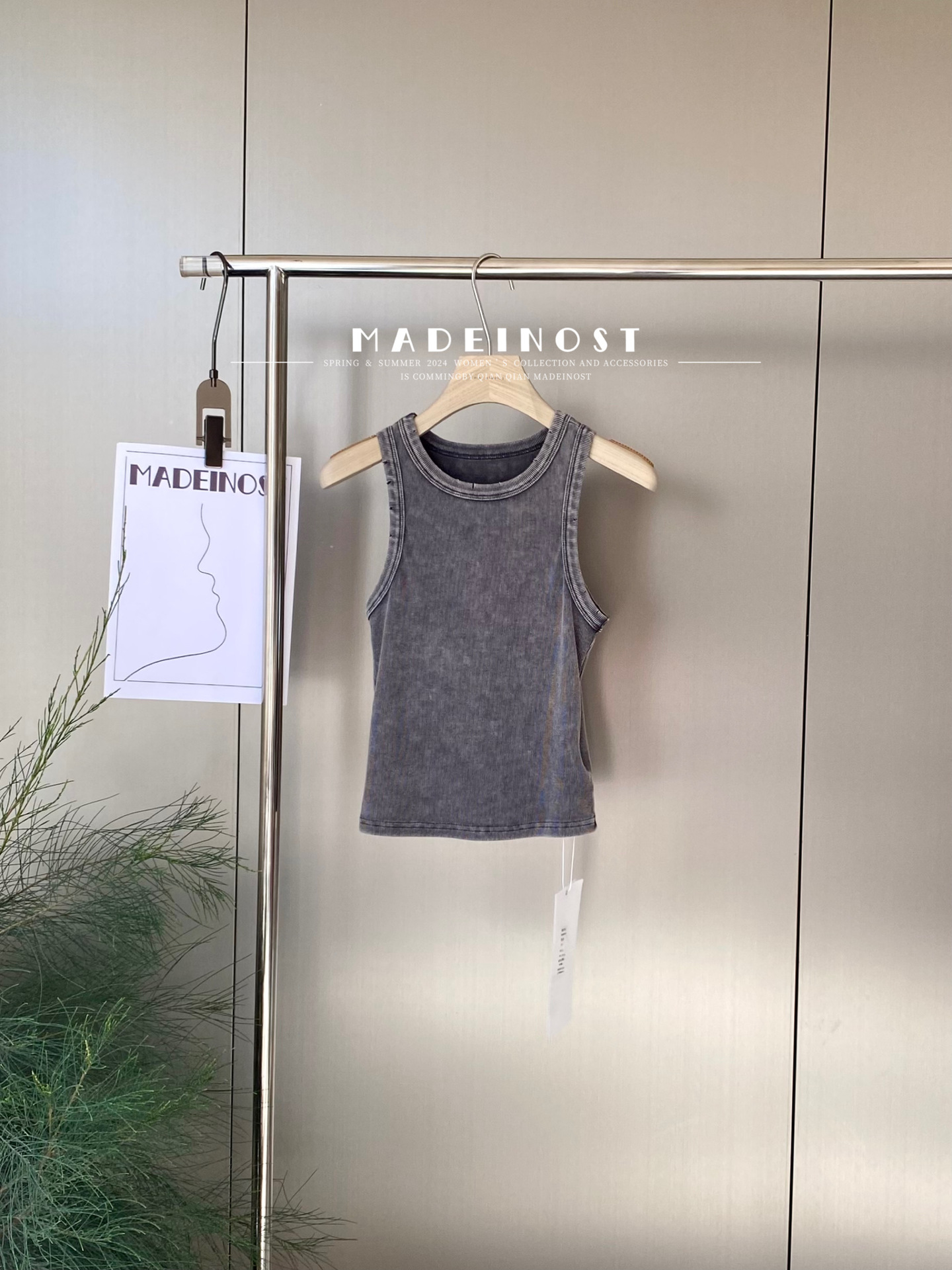 MADEINOST2024春季美式休闲复古破坏感水洗做旧螺纹背心女外穿