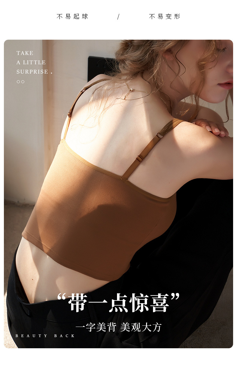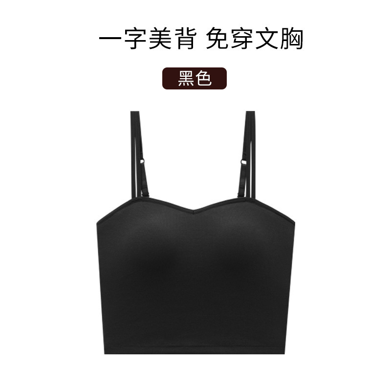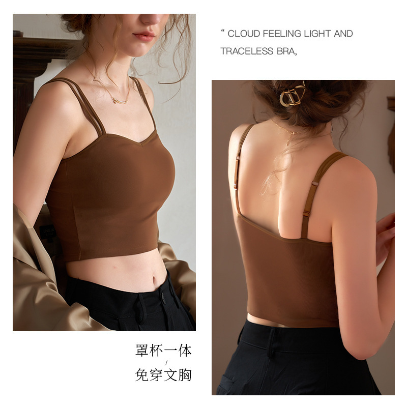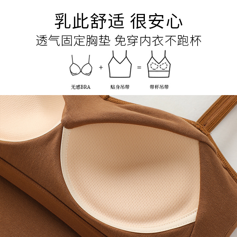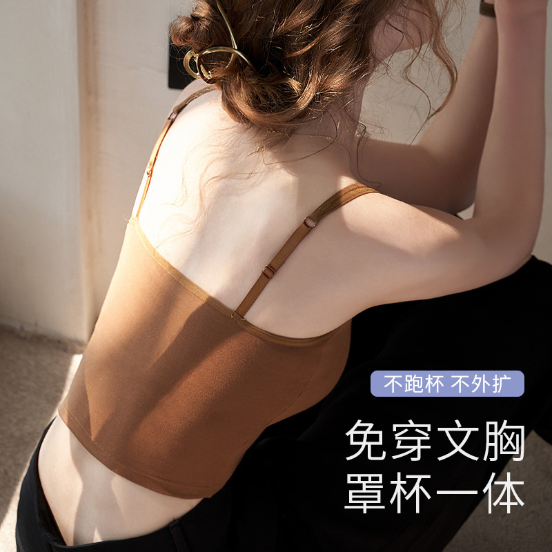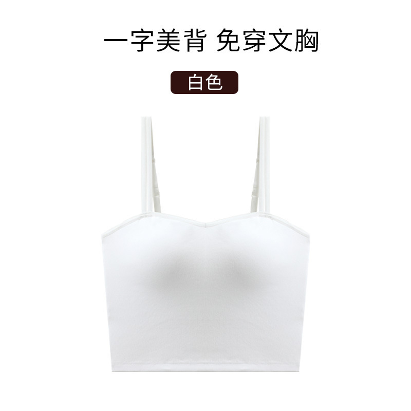 吊带背心女内搭带胸垫纯棉新款美背内衣文胸一体白色短款打底上衣
