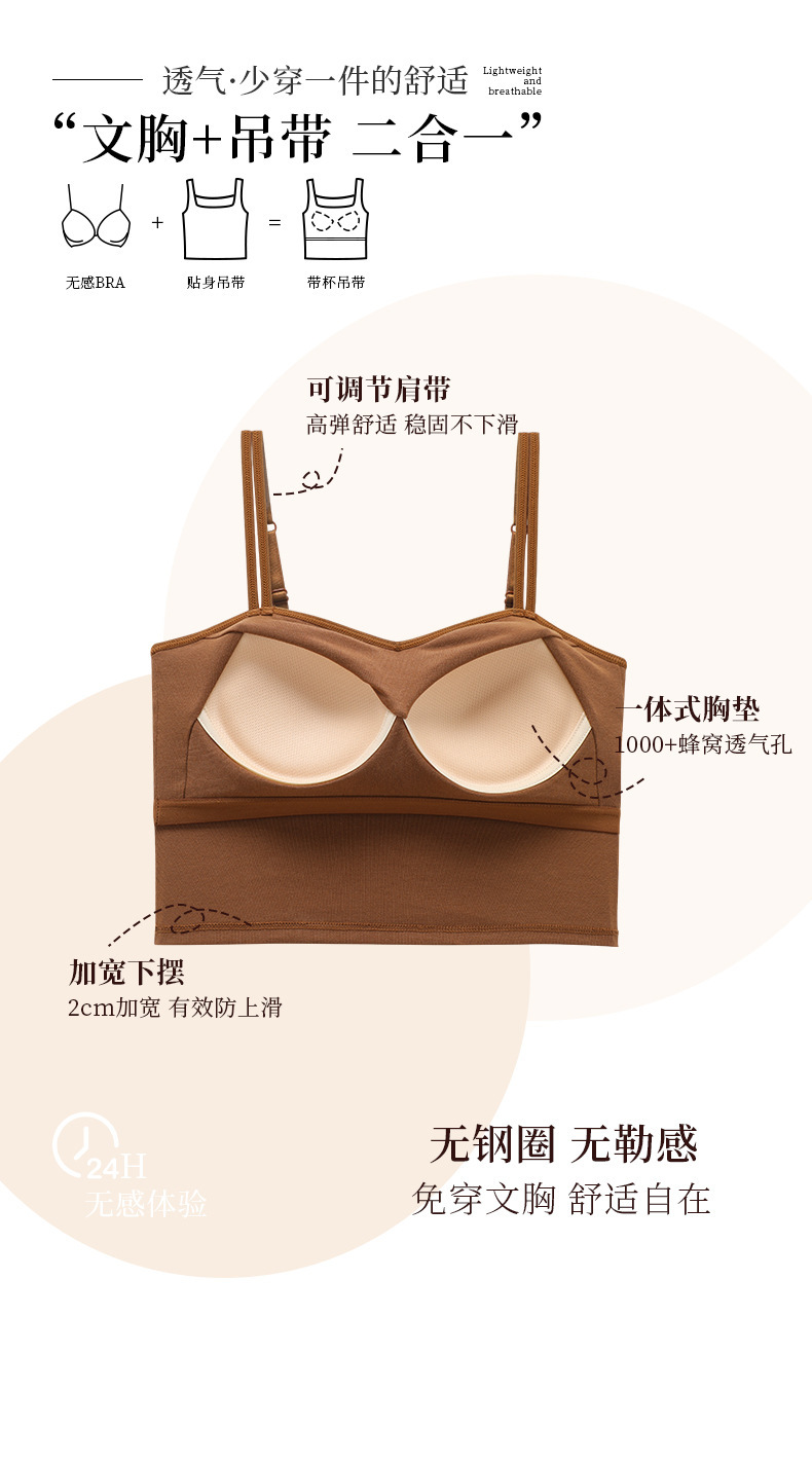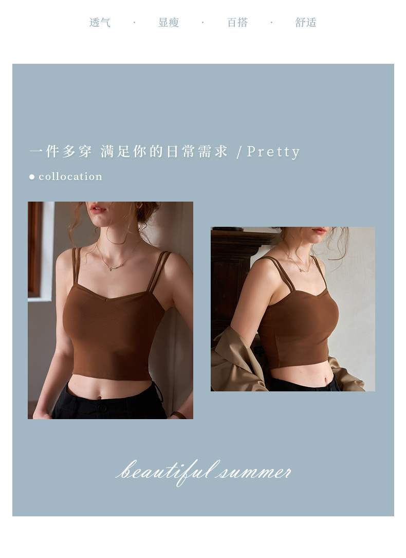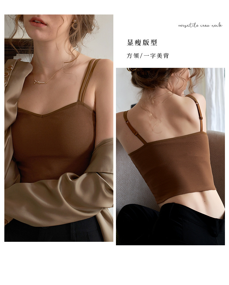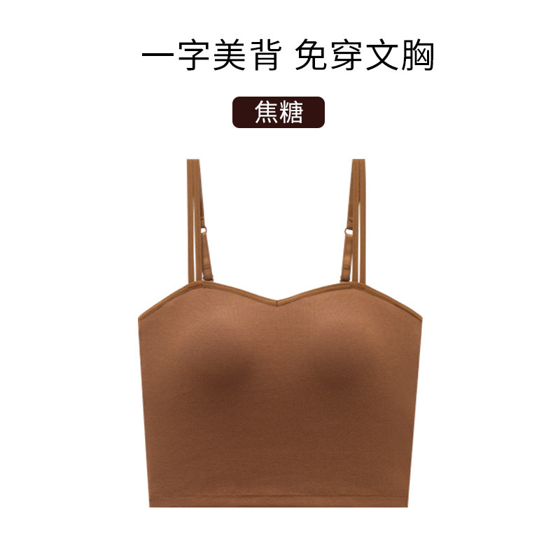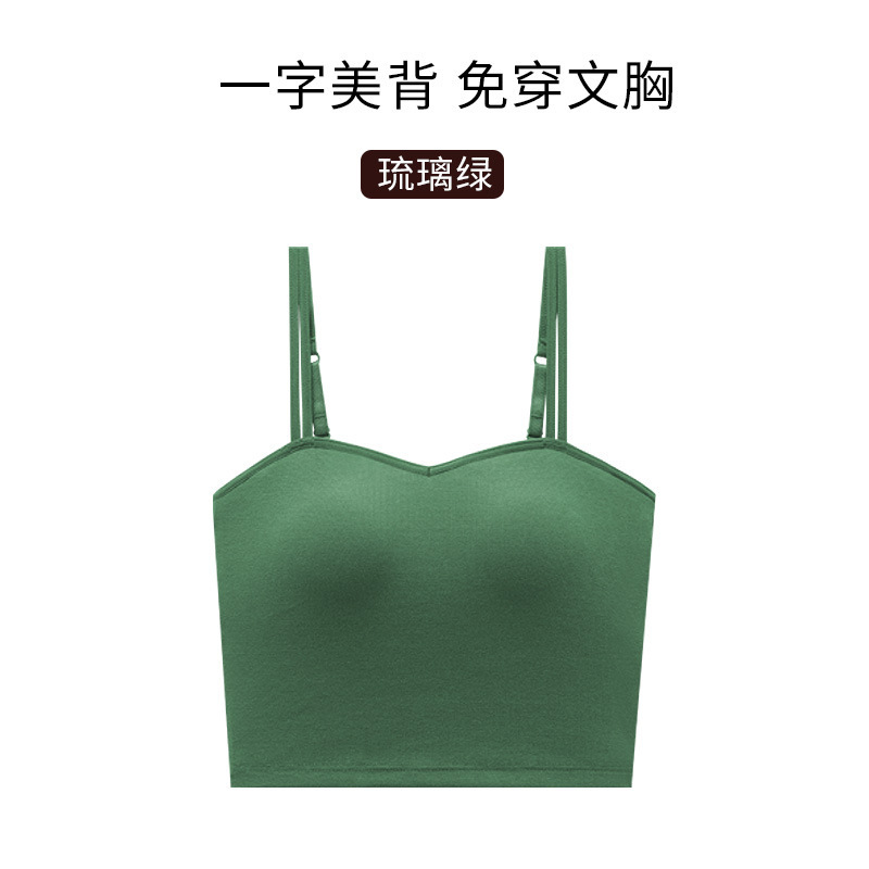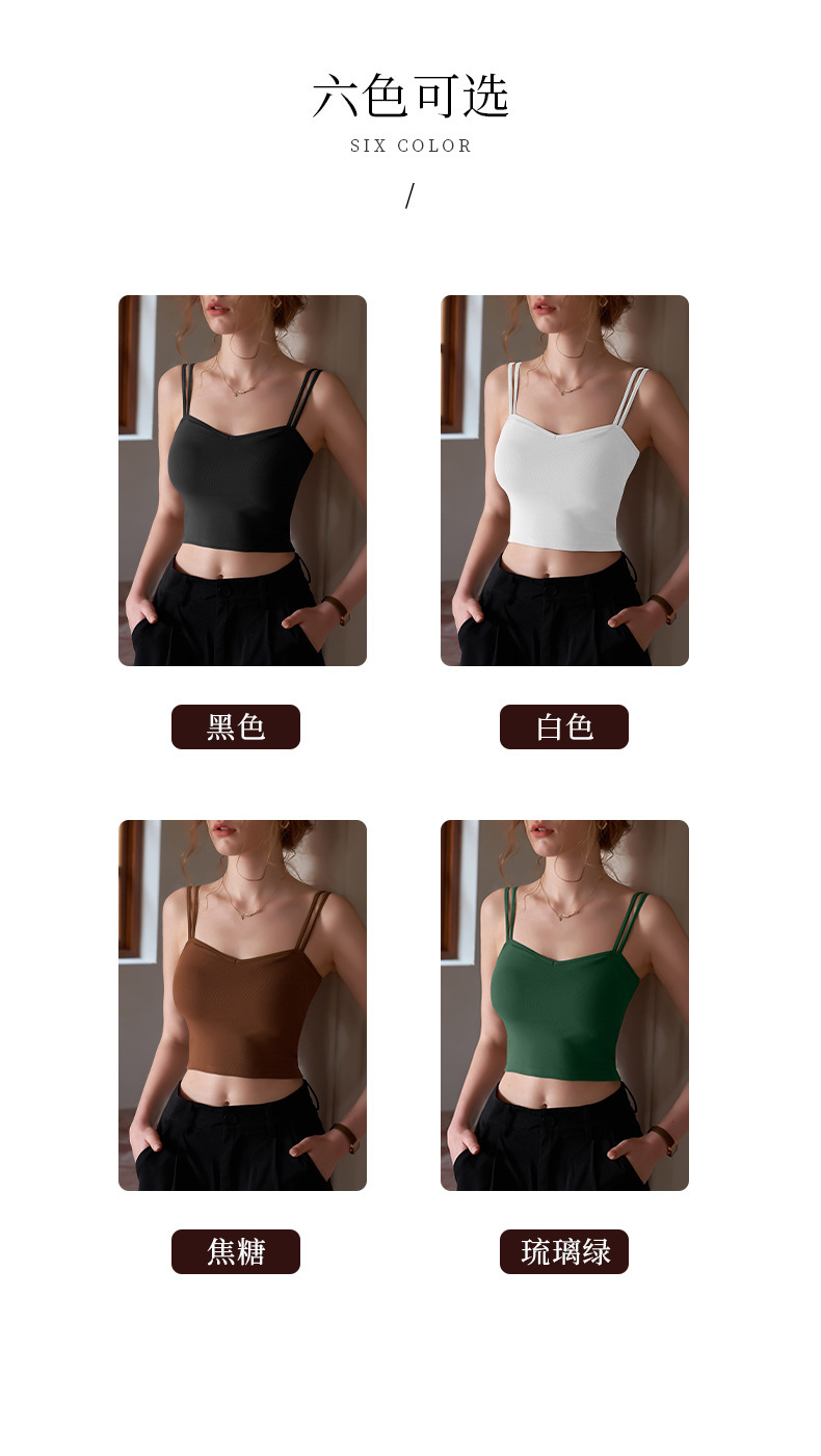 吊带背心女内搭带胸垫纯棉新款美背内衣文胸一体白色短款打底上衣