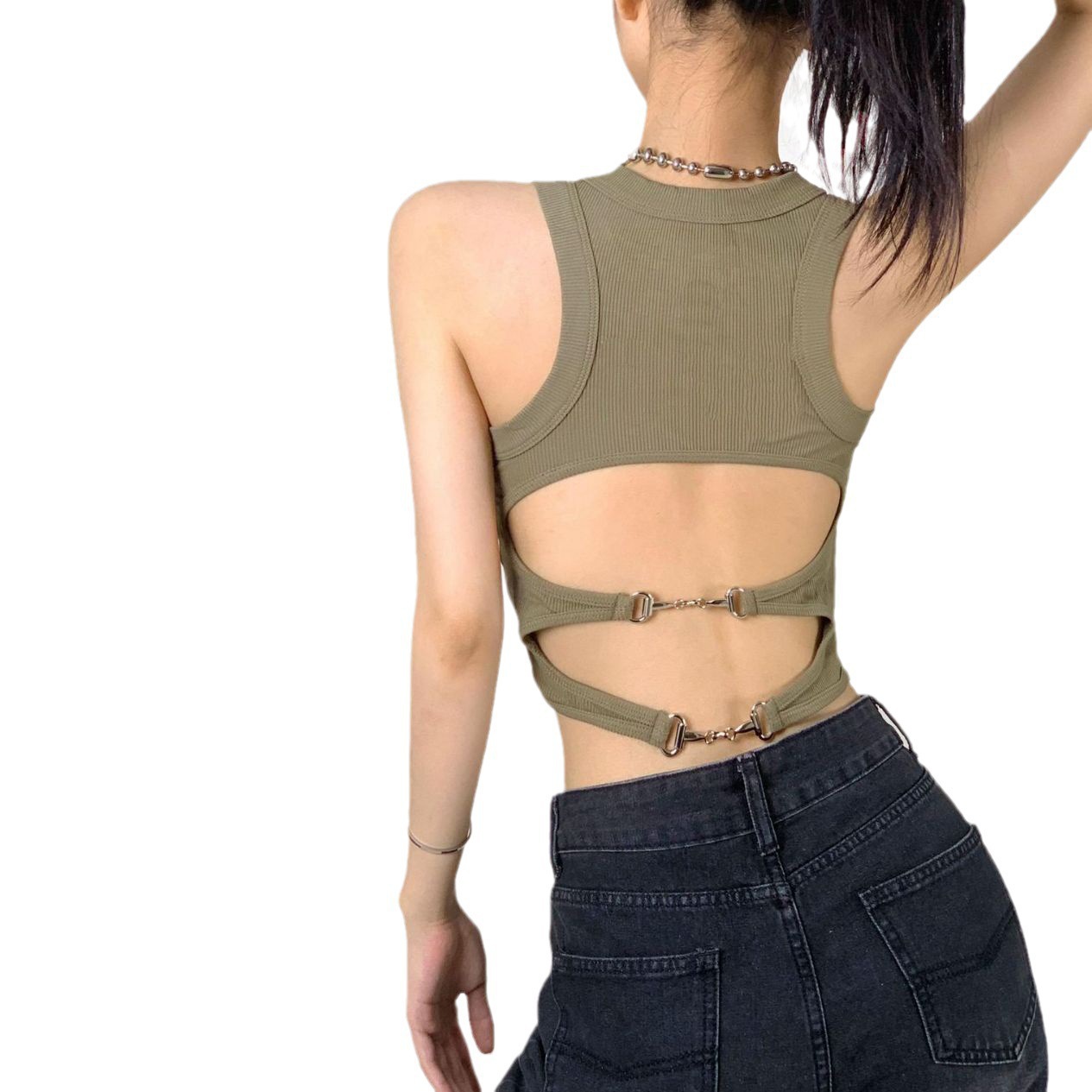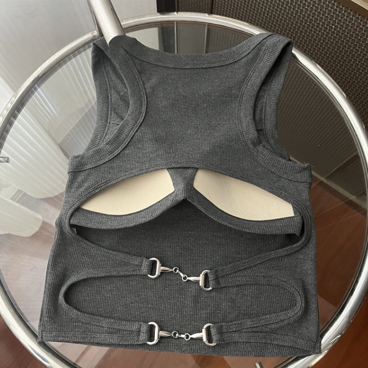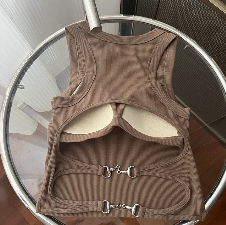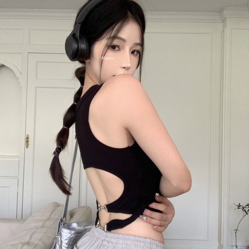 纯欲风辣妹短款吊带美背背心胸垫一体裹胸大露背无袖短款打底上衣
