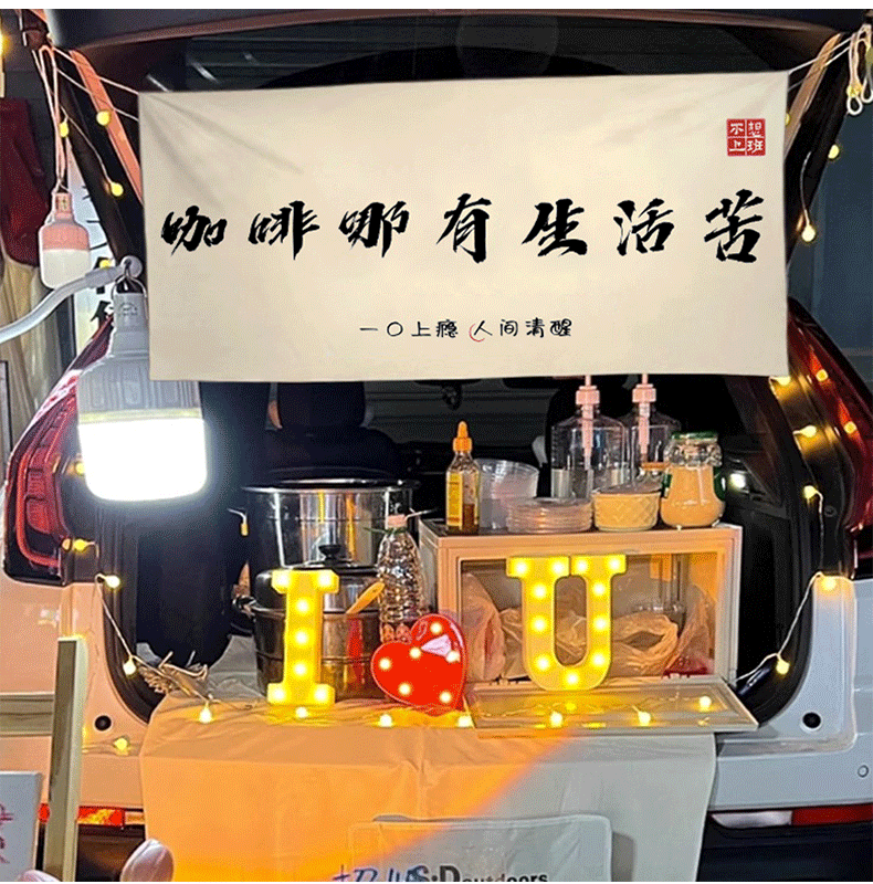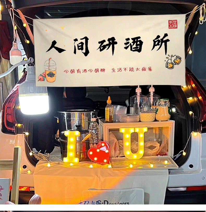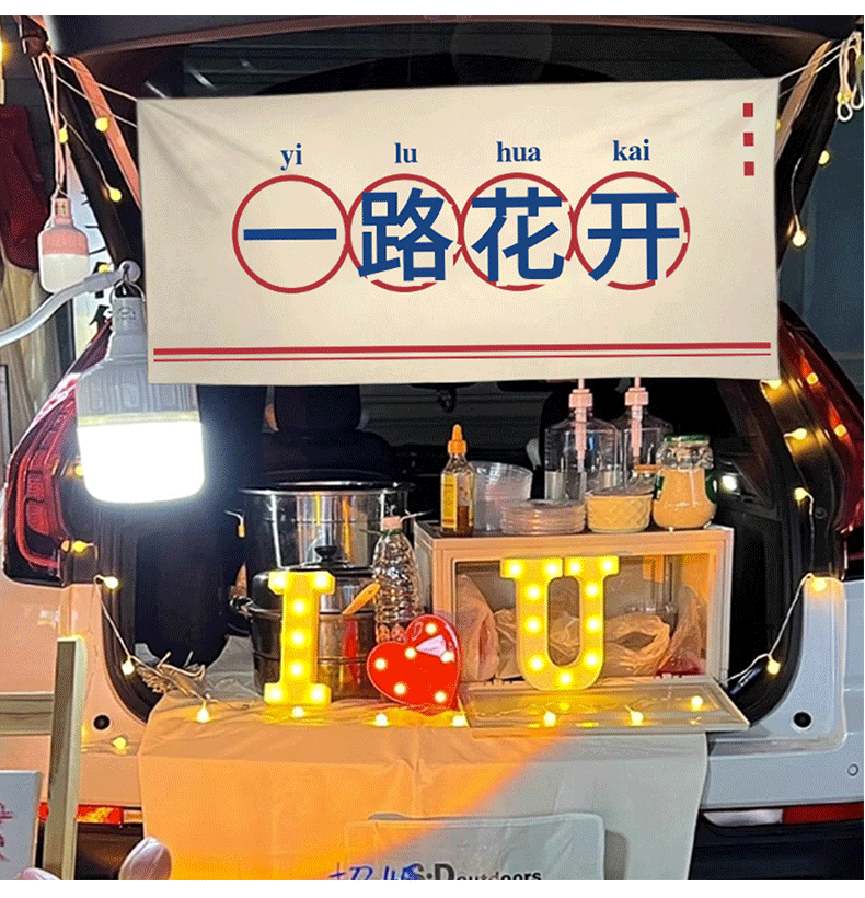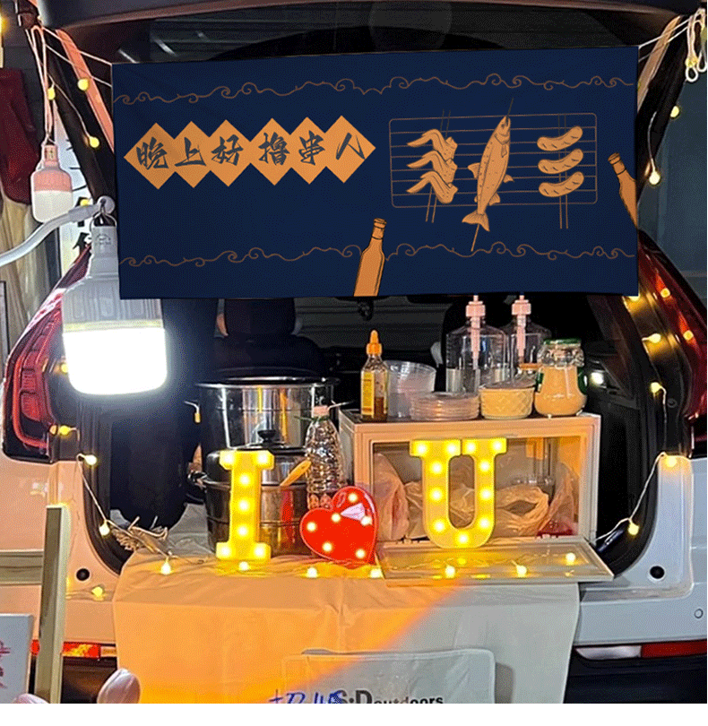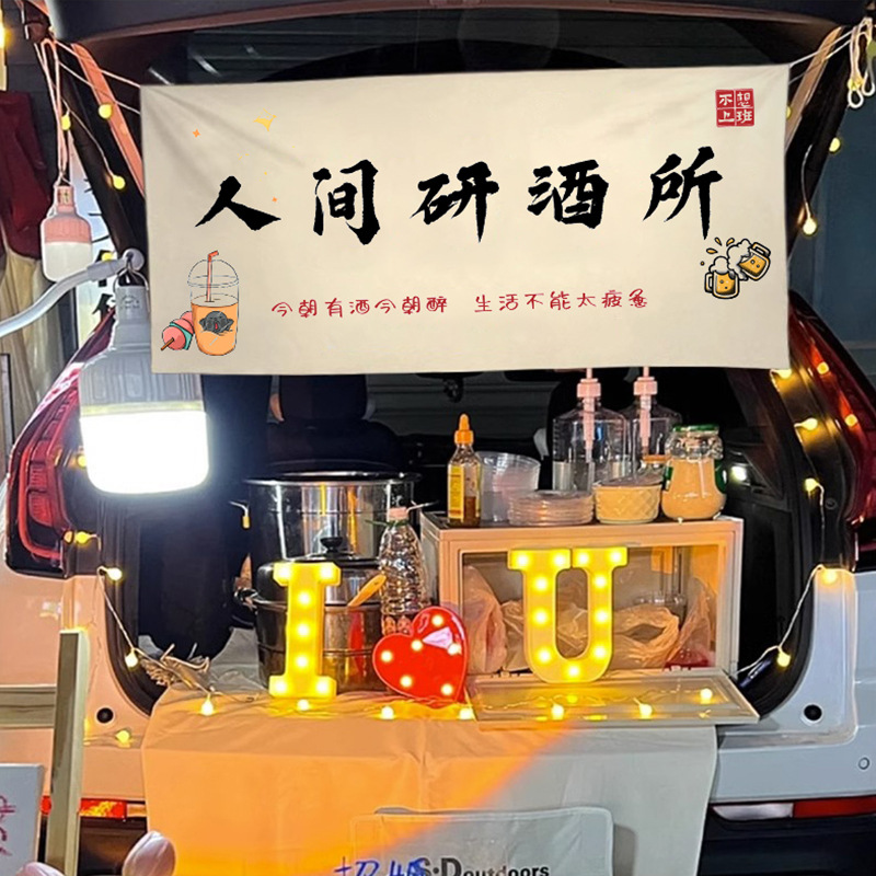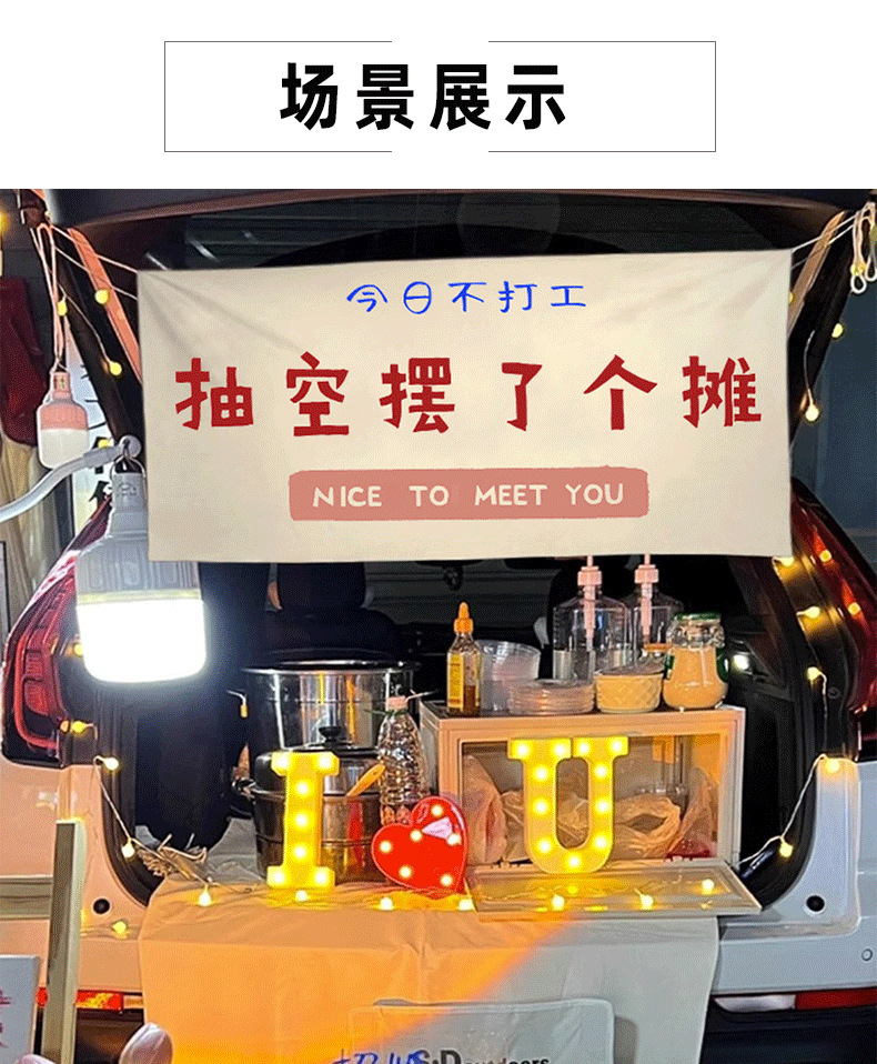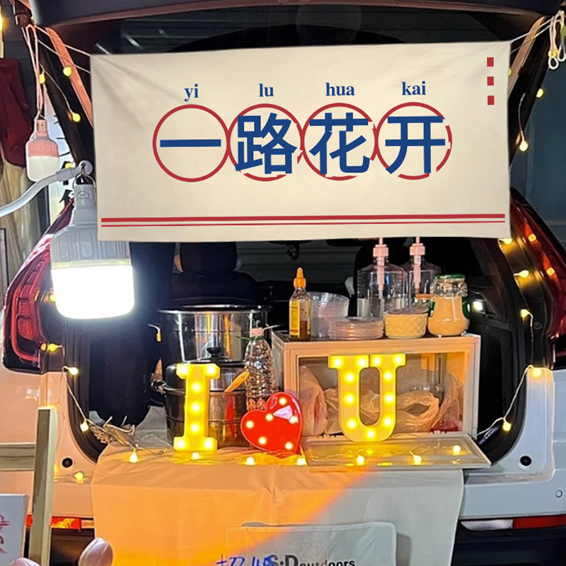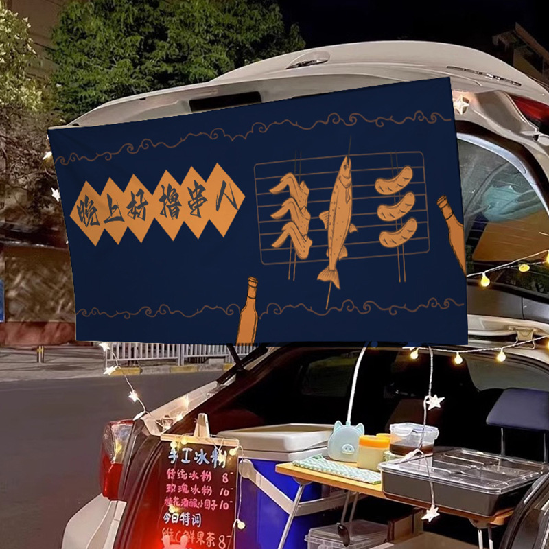 后备箱集市摆摊挂布摊位装饰背景布摆摊布帘广告布地摊横幅布帘