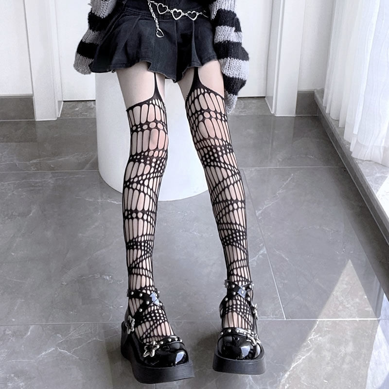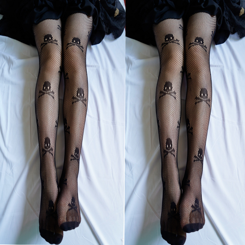 跨境爆款渔网袜欧美女士丝袜性感卡通黑丝防勾丝长袜女士连裤网袜