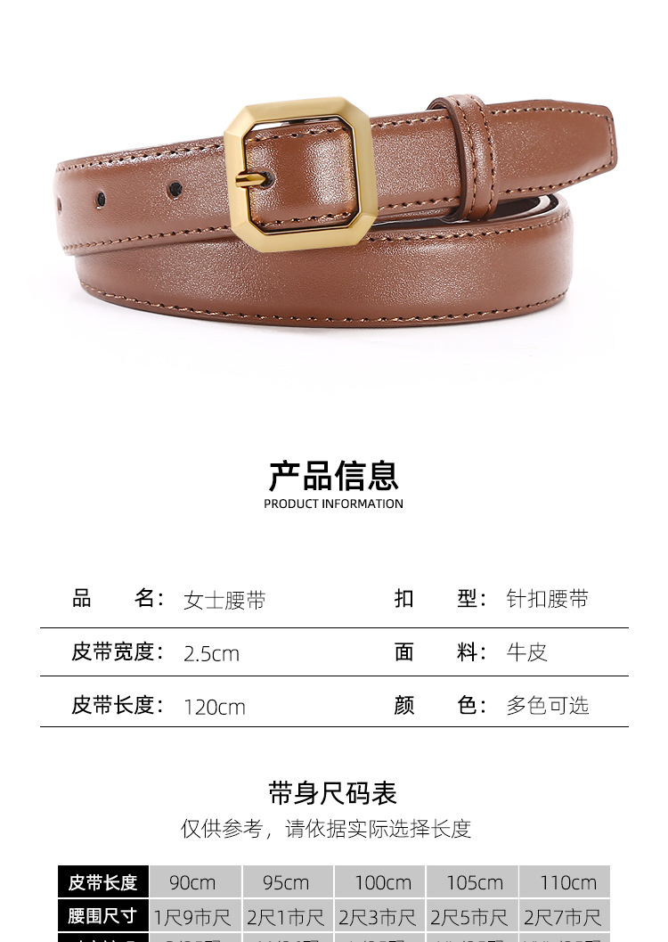 新款腰带女士腰带高级感时尚百搭皮带牛仔裤简约束腰牛皮装饰腰带