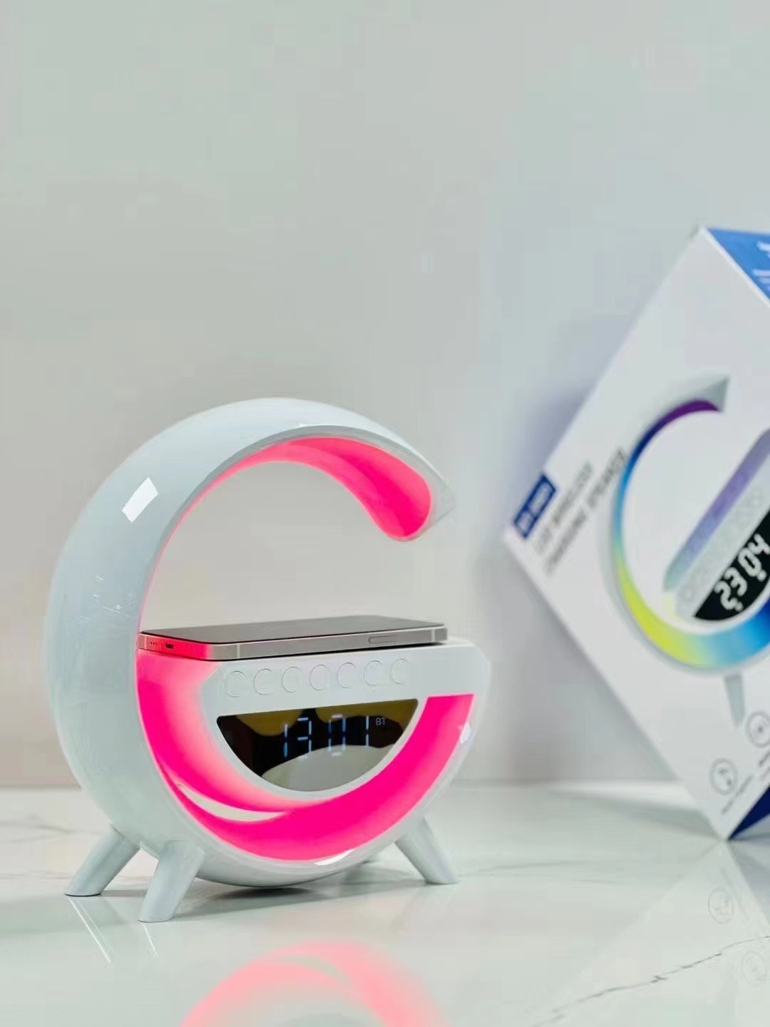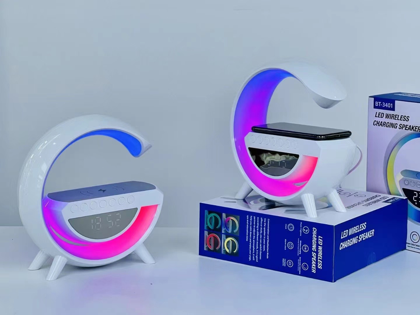 BT3401 爆款座充蓝牙音箱 跨境无线充电桌面摆件RGB氛围灯大G音响